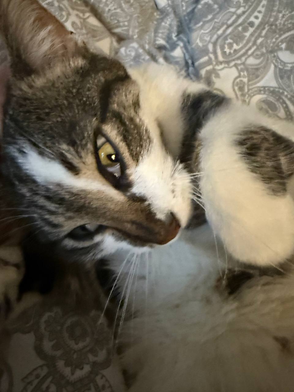 @chukottaРебята, посоветоваться - подскажите, к врачу завтра идём. Кот у меня, 2 года назад пережил фип с рецидивом, рецидив был неврологическим. Вылечили, все ок, но кот немного странненький с тех пор, диковатый, кусачий, может странно смотреть, бросаться. Немного ку-ку как будто. А сегодня утром его прям заплющило - прижался к полу, шерсть дыбом, орет - как будто кто-то нападает на него. Я испугалась, стала его гладить, и он вообще не сопротивлялся, это меня ещё больше напугало, нетипично для него. Сейчас успокоился, поел, спит. А я заметила, что у него веки вот так вылезли (на фото поймала момент, но было ещё больше). Это что может быть?