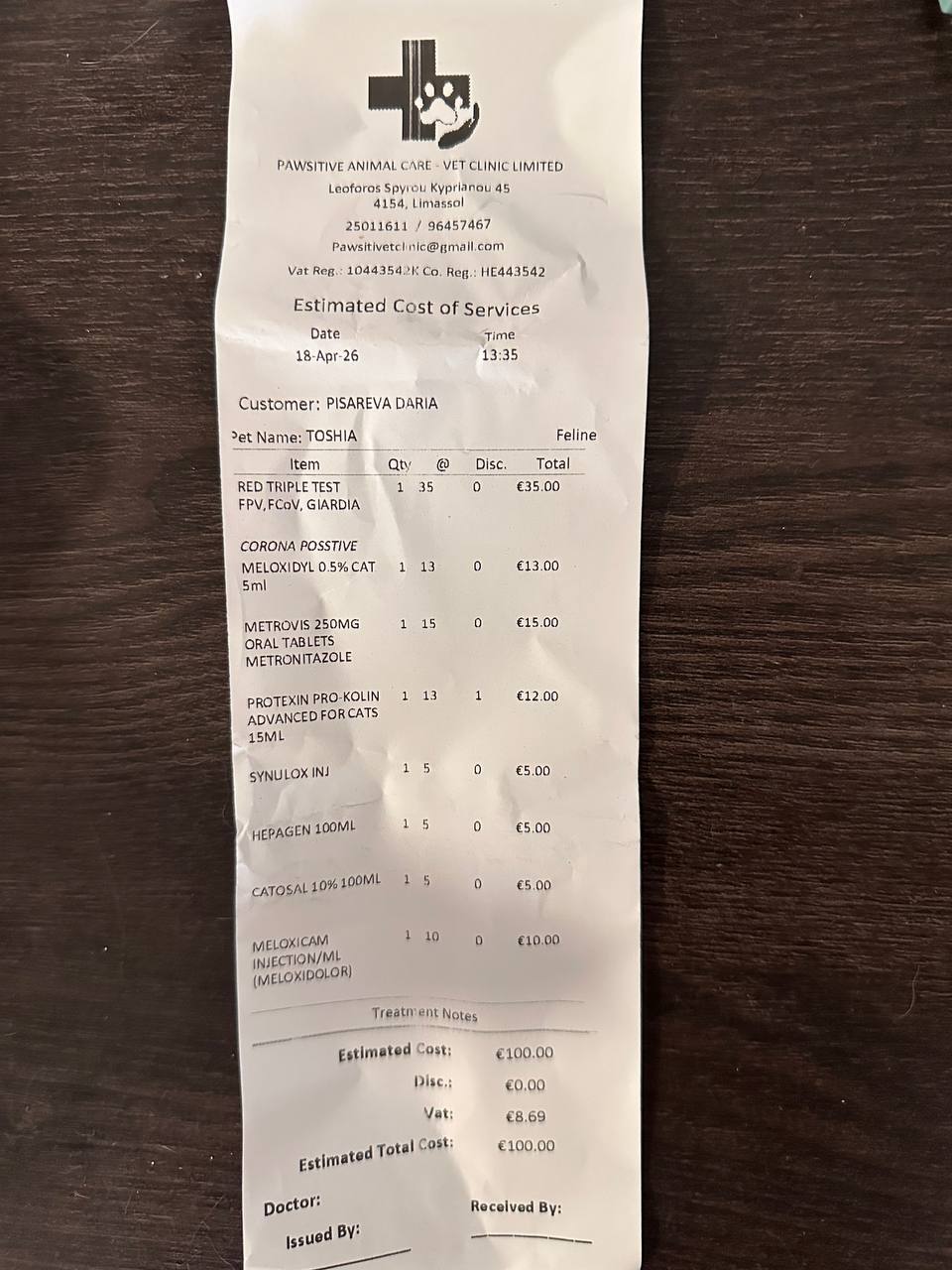 2️⃣ Можете приехать в клинику Алики (Pawsitive Animal Care) - и внести комфортную для Вас сумму для покрытия долга на аккаунте Татьяны: ее аккаунт там называется «Cats Monastery Tatiana «