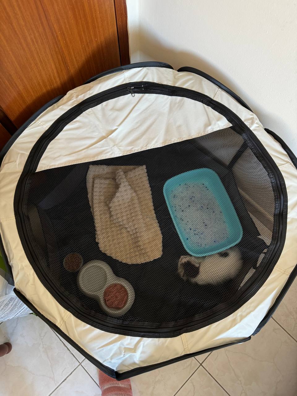 Взяли вот такой манеж в Джамбо 19,90€, и там помещается все для котенка, а так же выбраться невозможно😁