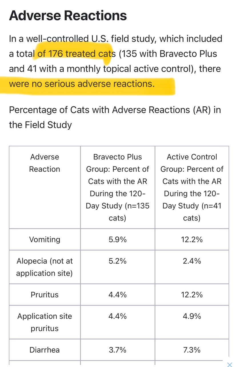 https://translated.turbopages.org/proxy_u/en-ru.ru.48077854-662d1b66-b9d9a926-74722d776562/https/www.drugs.com/vet/bravecto-plus-fluralaner-and-moxidectin-topical-solution-for-cats.html прочитайте американское исследование о влиянии местного применения капель Bravecto(тут выводы по Bravecto Plus) на кошек, и возможные последствия, которые дает действующее вещество Bravecto флураланер, и станет яснее