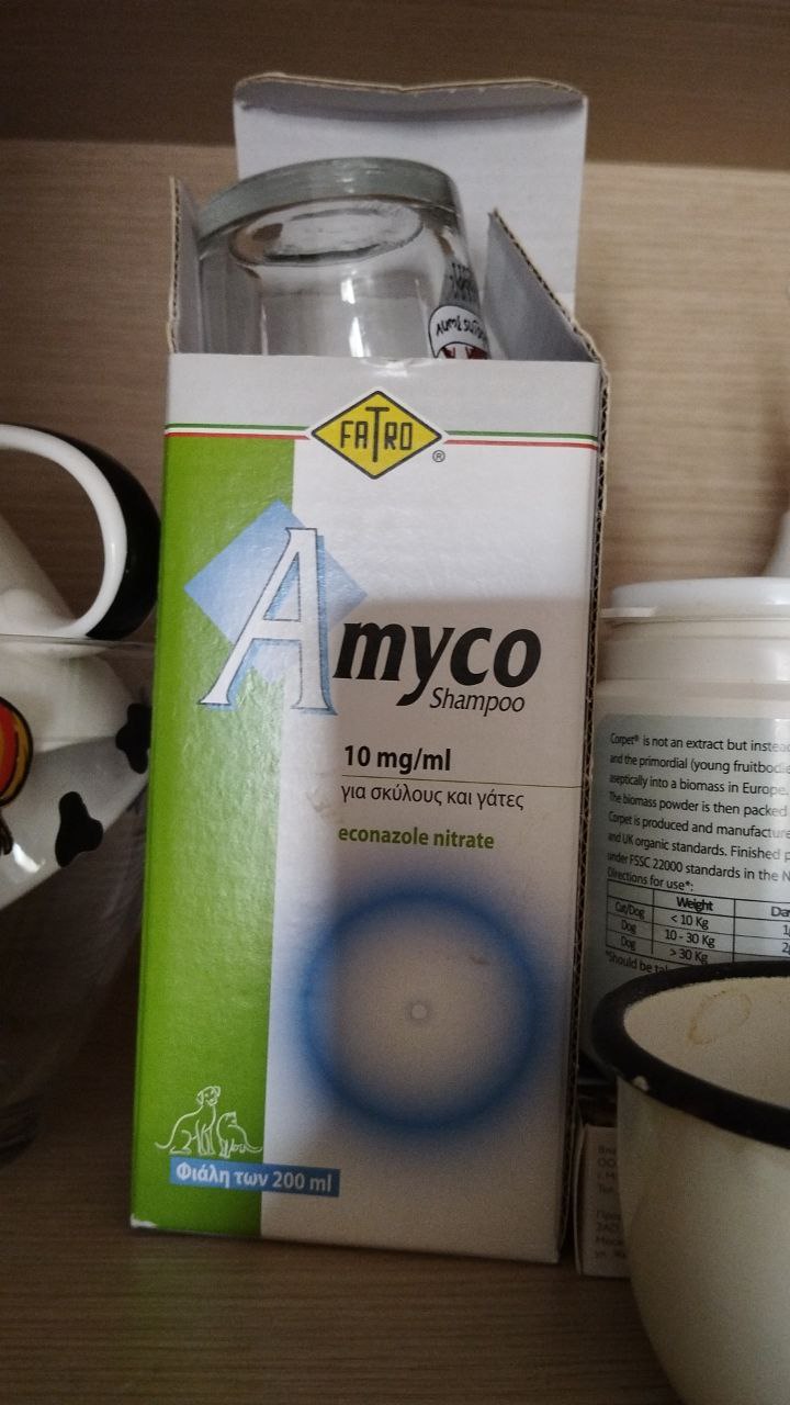 Один раз мы перед поездкой в Россию подцепили лишай от уличного котенка, с которым нянчилась моя дочка. То есть сначала она, и почти моментально мы тоже от нее с разницей в 1-2 дня. Пошли к дерматологу, сделали анализы, врач выписала нам мазь для животных, называется "Ям", продается в зоомагазинах. Стоила какие-то копейки, помогла почти с первого дня. Может здесь тоже что-то такое есть? Помню, у нее был сильный запах солидола или чего-то в этом роде
