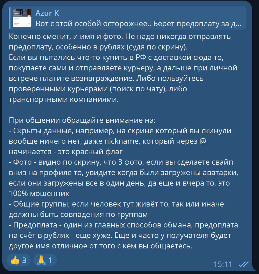 Очень жаль, что так вышло 😞 Присылайте, конечно, скрины, лучше сначала мне в личку, чтобы забанить мошенника в чате, пока он не переименовался.