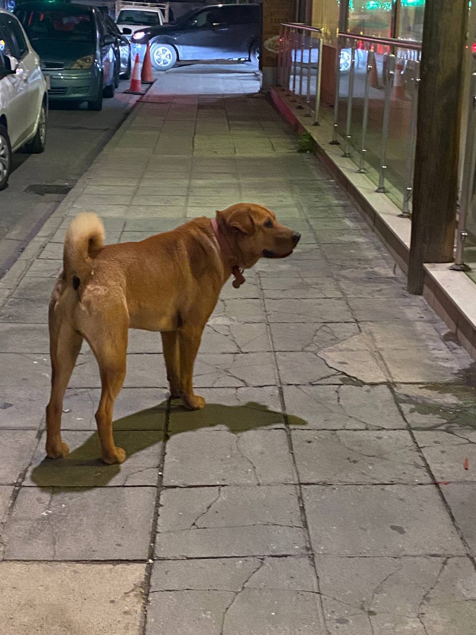 Большая рыжая собака с ошейником (и красный медальон) бегает здесь https://maps.app.goo.gl/dxbcFk8BiuiJnqGE7?g_st=com.google.maps.preview.copy