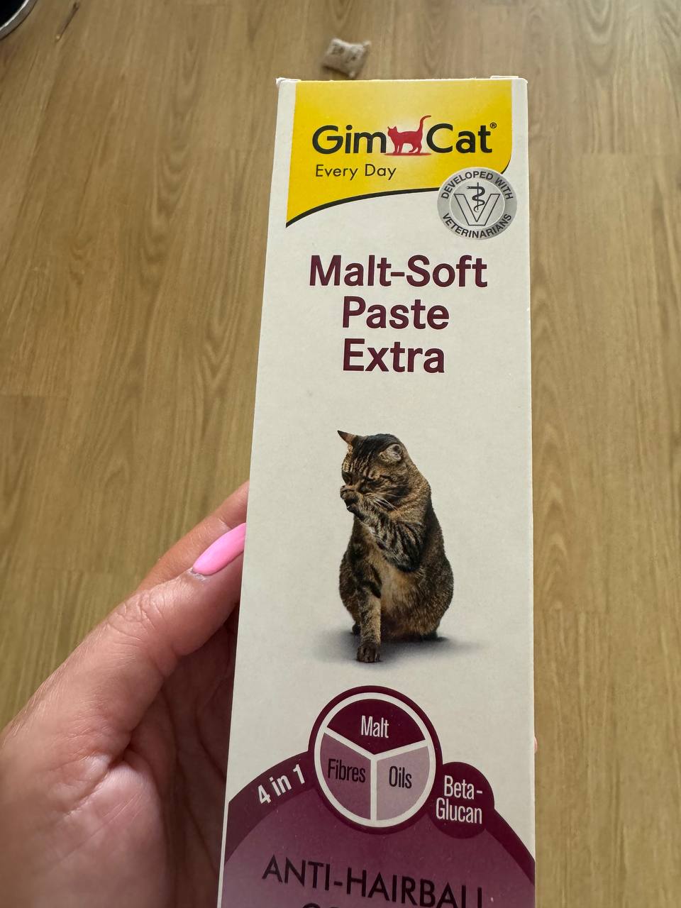 Отличная мульт-паста ! . На Кипре ее не продают , привозили из Испании - там и цена отличная. Но, не факт что кошка будет есть пасту : у меня сначала все было отлично : ела через день прямо из тюбика, потом как отбило, теперь выдавливаю на блюдечко и может в течение 2 дней слижет с голодухи. А так я сею овес постоянно и имею периодические блюе… вот овес кошка моя обожает.