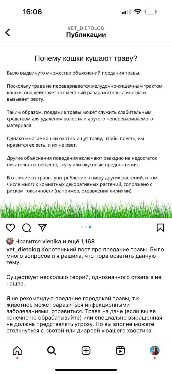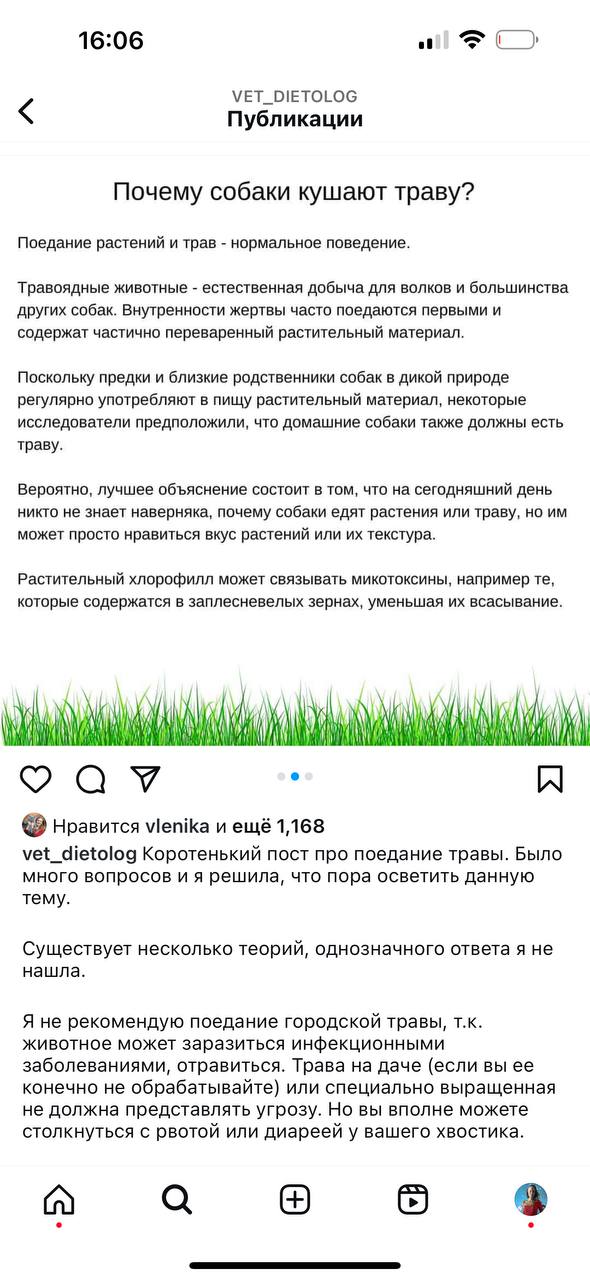 Да у меня и собаки травку иногда щиплют (когда она есть😆). В сезон травки часто вижу, что кого-то вырвало, а там травинки. Я так понимаю, что если дискомфорт в желудке, то они сами таким образом рвоту вызывают🤔