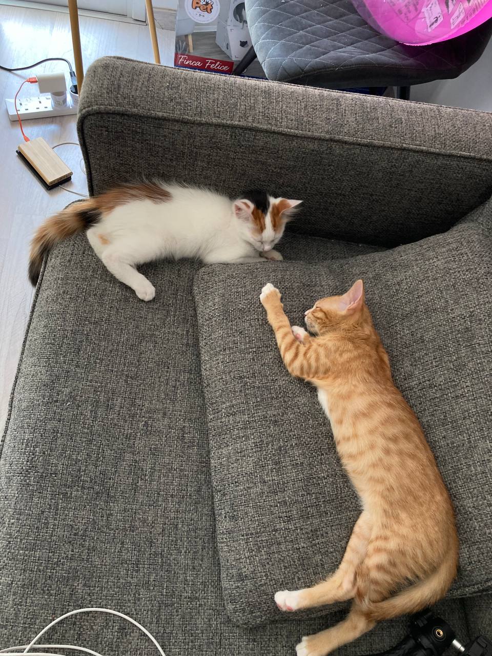 А они из другого двора, который повыше. Я все гадала, куда двойняшки резко пропали, надеялась, что их обеих взяли. А они, видимо, просто пошли новое место себе искать. Через дня 3 увидели на прежнем месте нашу, но её мать уже выгоняла. А нам как раз нужен был котенок в компанию другому подобрышу. Двоих бы не потянули взять (тогда было бы в сумме дома 5ро 😁), хотя очень хотелось)