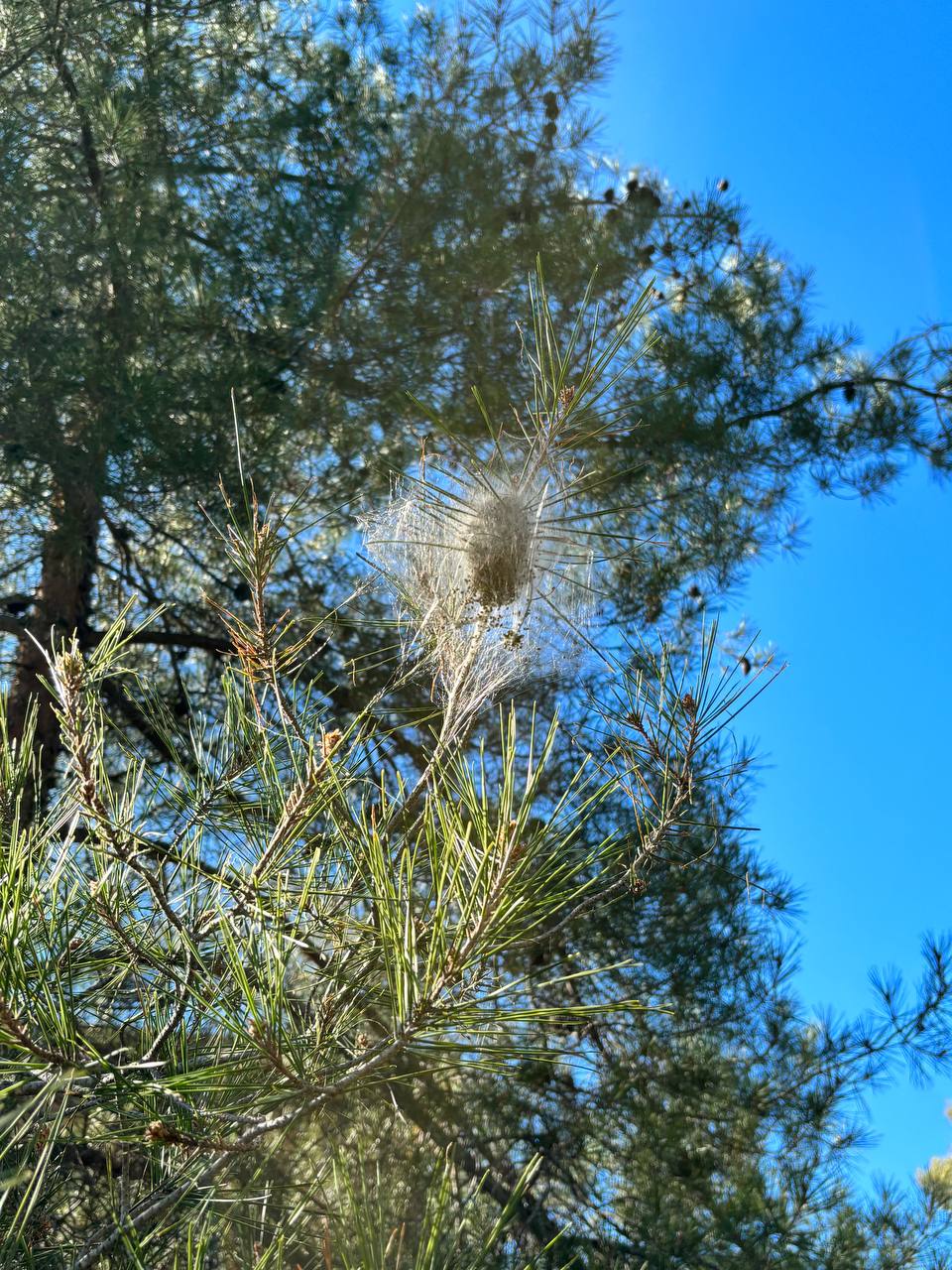 Благодаря чату узнала про гусениц на хвойных деревьях , сегодня сделал фото в Гермассойе , а вчера ездили в район Пафоса и вдоль хайвея на многих соснах такая же «проблема» .