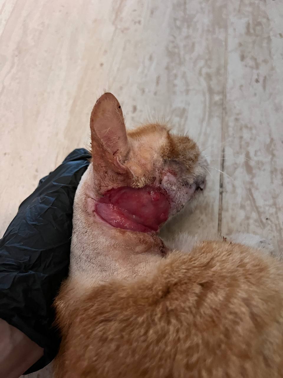 Открываю сбор в 142 евро на кота с мокнущей раной на шее. Кота увидела возле Склавенитиса. На шее огромная мокнущая рана. Пыталась обрабатывать на улице несколько дней, но кот тут же начинал валяться в грязи и рана становилась еще хуже.