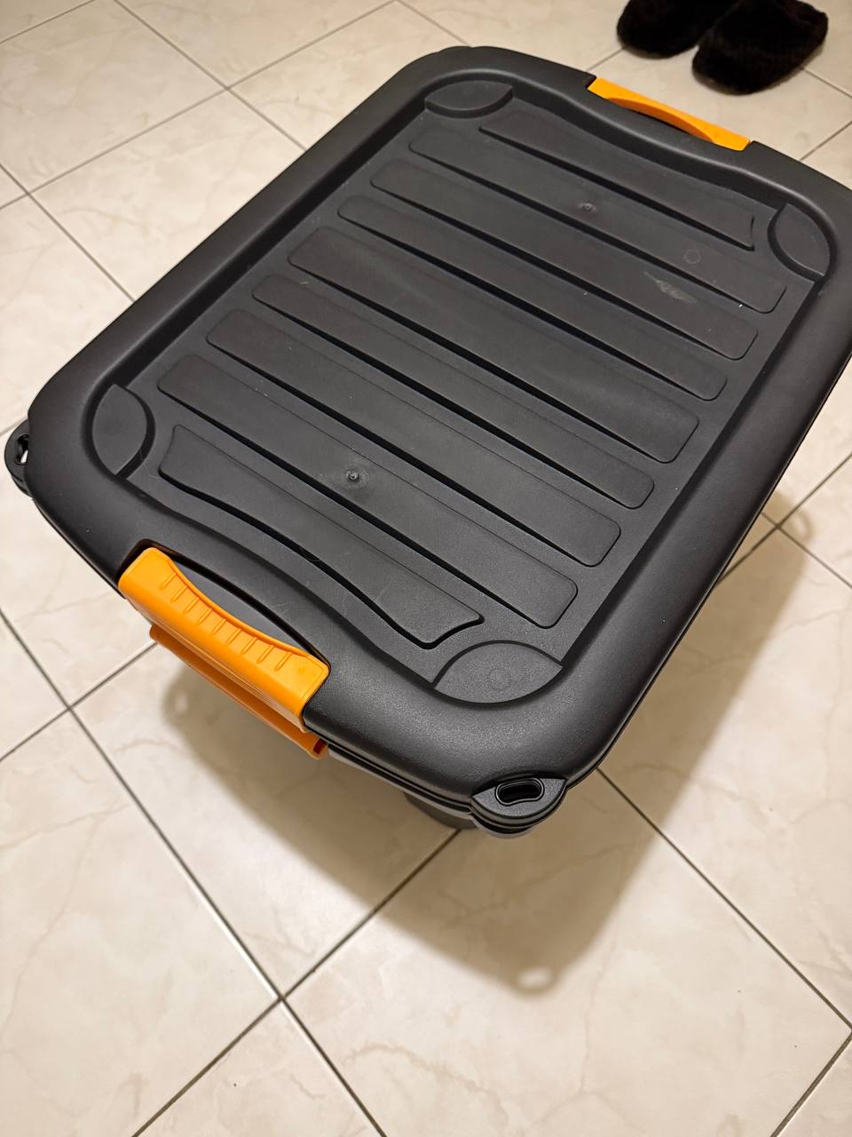 1. Покупаем хозяйственный пластиковый контейнер, примерно на 40 литров объёма. В Джамбо такой стоит 8 евро и есть черного цвета