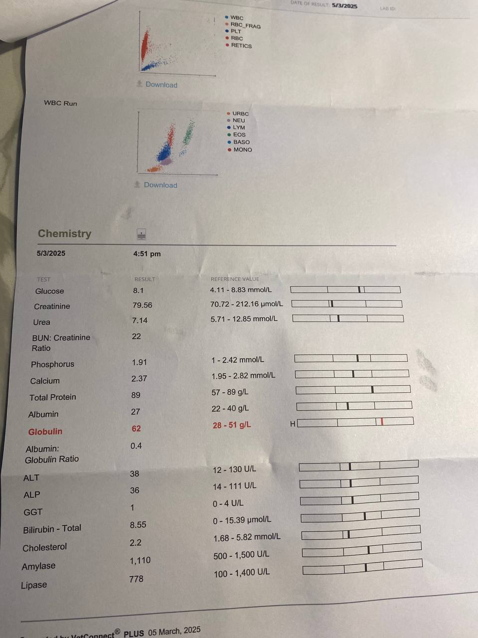 Друзья, имеется кошка с стомагингивитом (уже про нее тут не раз писала) уличная, все гнилые зубы были удалены (оставили один клык) но стомагингивит не прошел, и обнаружила что оставшийся зуб ей травмирует нижнюю десну, записалась на пятницу на его удаление к Захосу. Пока решила сдать кровь анализ, сказали анализ очень хороший и единственное решение в ее случае это стероиды. Я не дала колоть стероид все равно идем к Захосу он сам решит что лучше. У кого был опыт такой болячки действительно стероид это единственный выход? Fiv/felv отрицательный, ест нормально, но тяжело начинает видно больно, но начав может очень много съесть, так что могу сказать что пока ест хорошо.