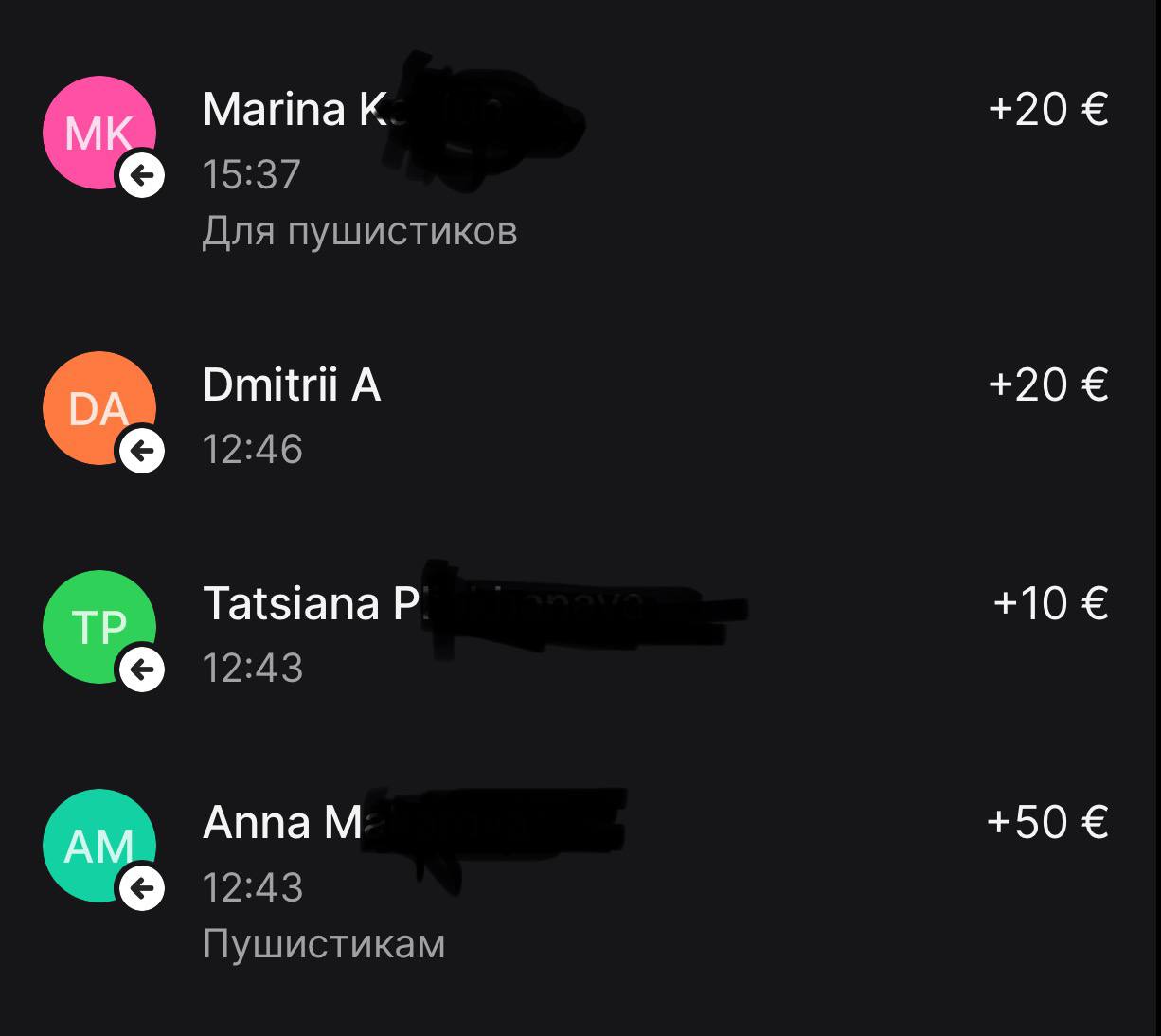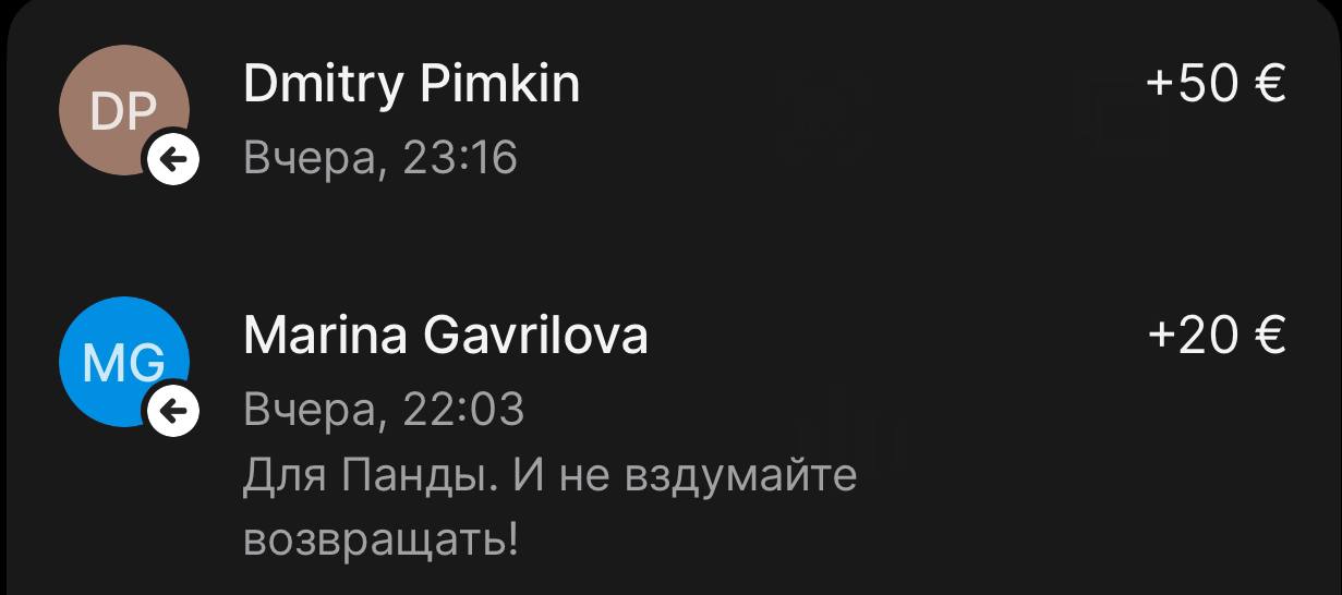 Итого сейчас долг за прошлые расходы 220 + 350 Панда добавила = 570 евро