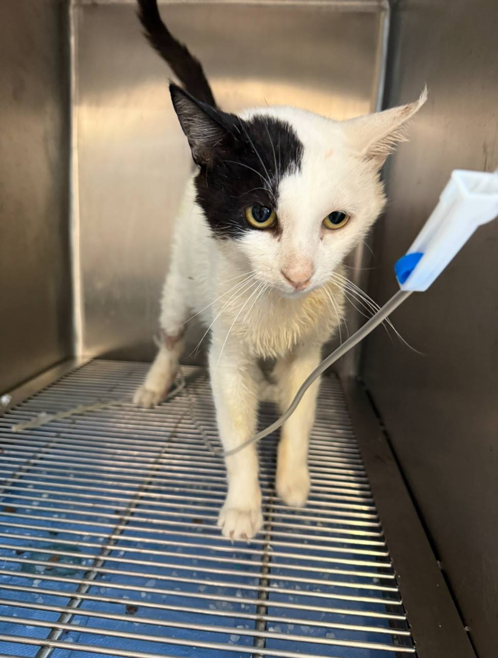 Стал кушать, аки тигр, а имя свое получил - за то, что вот вроде весь такой злобный и шипящий, но потягиваешься руку - и бодаться начинает лбом, благодарит, и только потом есть начинает… завтра поедем снова к доктору.