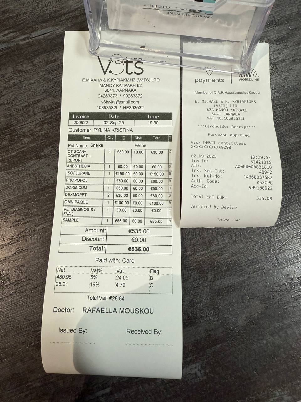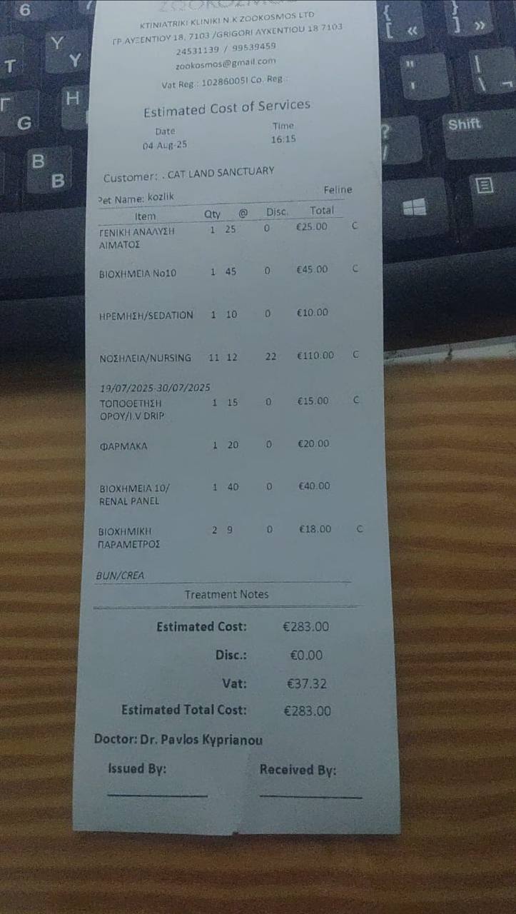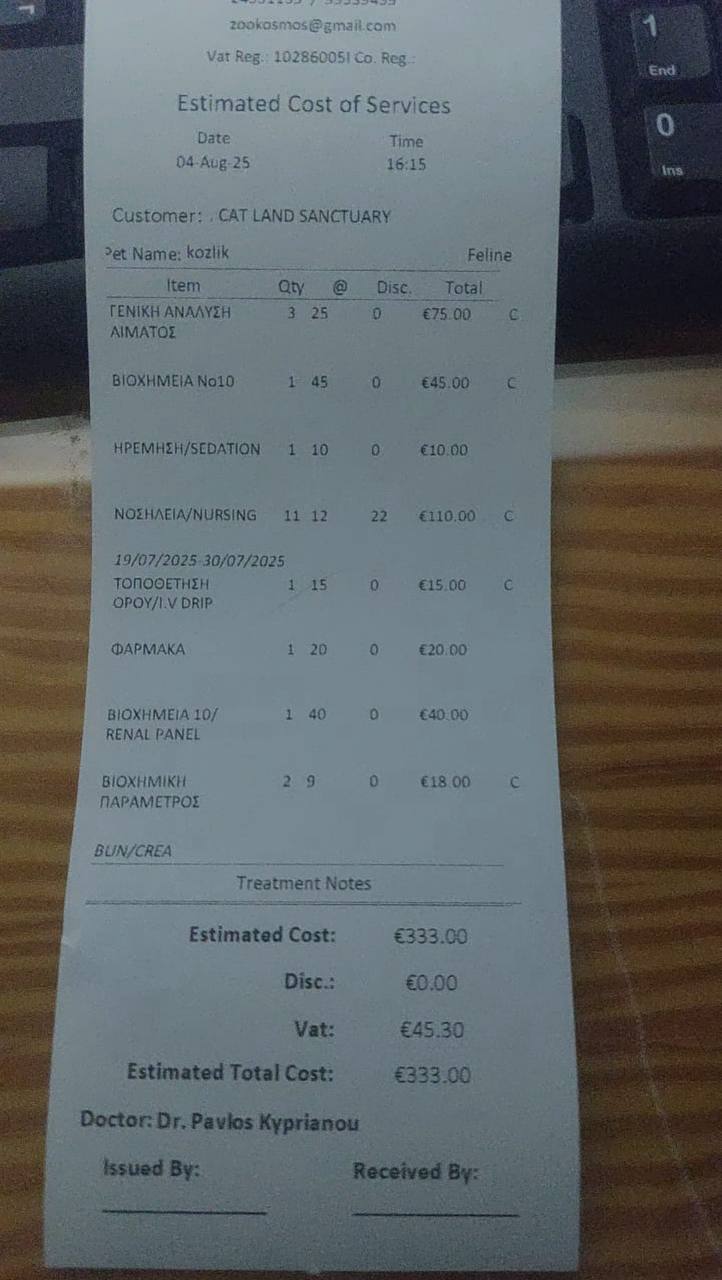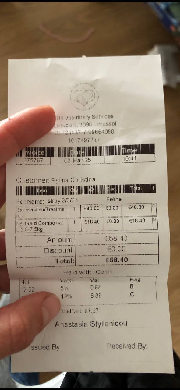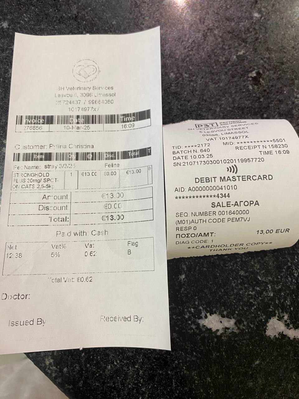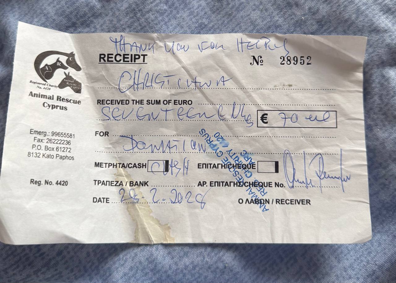 Случилось чудо. Незнакомая мне девушка из Лимассола - оставила в клинике Зоокосмос 50 евро для меня ♥️