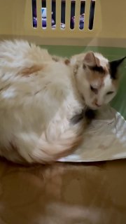 А пока живем у меня в машине, ждем приема:) впервые увидела, что уличный кот после отлова - просто развалился и уснул крепким сном , после еды… видимо сильно вымотался :(
