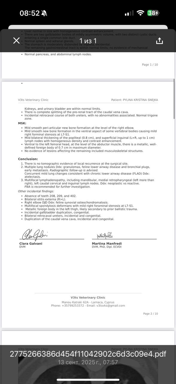 Хочу верить, что метастаз нет… и мы счастливые и довольные будем жить дальше свою лучшую кошачью жизнь , и не будем больше приставать к Вам ☺️