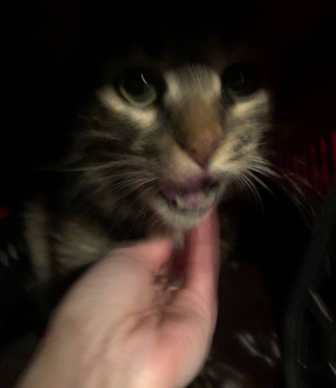 Я долго не могла ее поймать… а тут - я приехала без переноски, и вуа-ля! Она просто пришла ко мне, просто далась в руки, я просто посадила ее в машину и мы поехали домой за переноской.