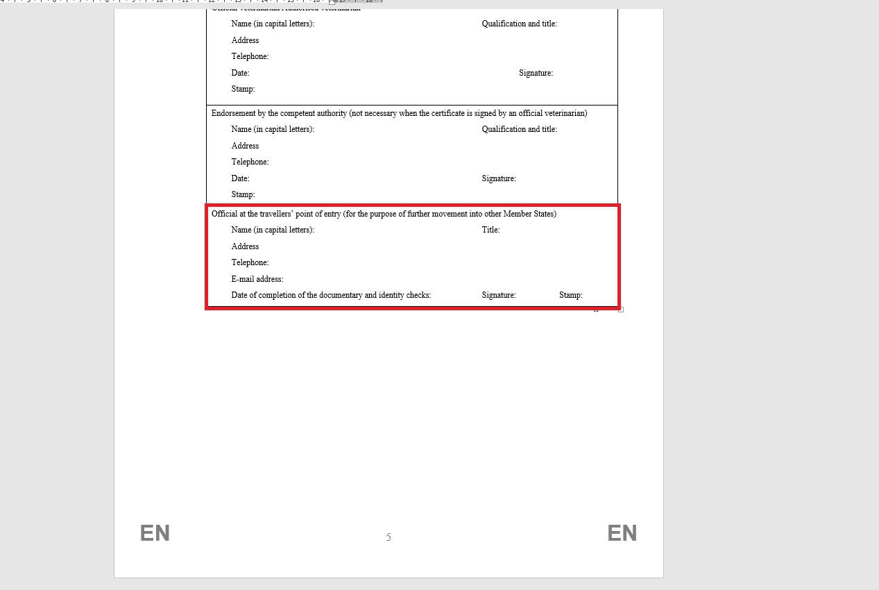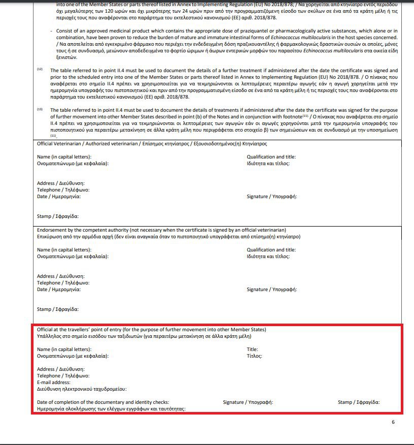 Я как раз недавно получала ответ по этой теме от ветслужбы Ларнаки, оригинал ответа на скриншоте. Там же выделена графа из евросертификата, в которой уполномоченными органами проставляется печать и подпись о первоначальном ввозе животного в ЕС. Получается, в вашем случае эту печать и подпись о ввозе животного в Евросоюз должны будут проставить сотрудники таможни в Германии.