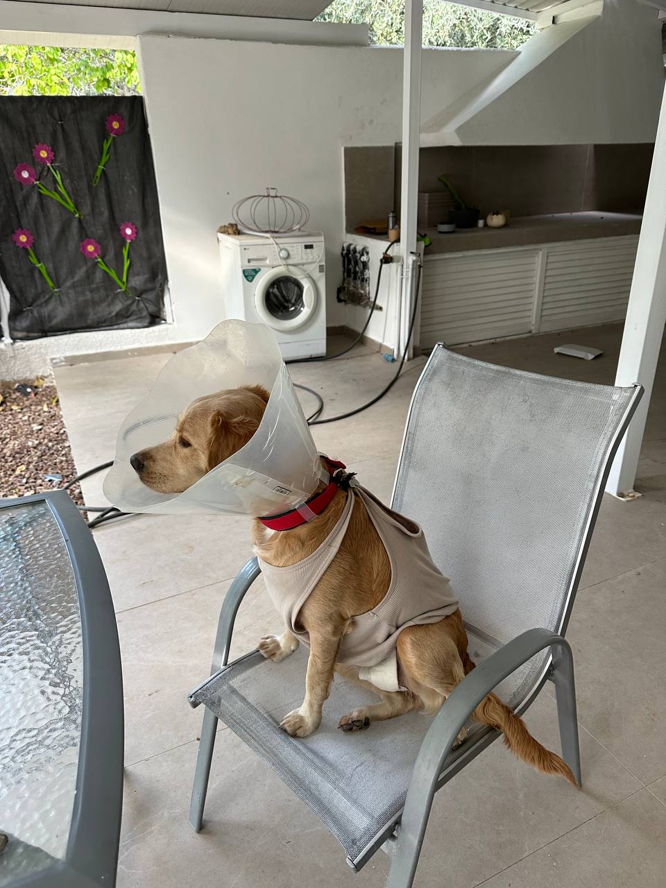 К сожалению, я не видела попон на Кипре, если не найдете, то можно одеть воротники (если будут снимать, то не на ошейник, а на шлейку), либо вдруг есть знакомые со швейной машинкой - там очень просто, вырезать ткань нужной формы и пристрочить тесемку.