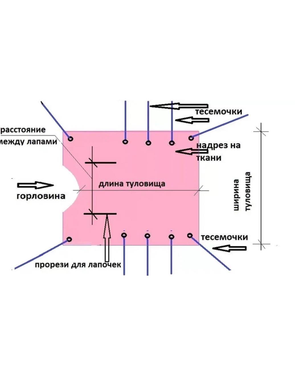 Здравствуйте, можно из старой футболки вырезать сразу с завязками или отверстия для лап даже без швейной машинки , конструкция максимально элементарная . Извините , если совет был лишний .