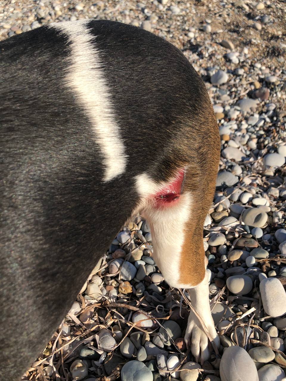 Ранена… голодная. Очень -очень добрая, детей любит. прям лицо лизать готова. без ошейника, куда им можно податься? Питомники все переполнены?