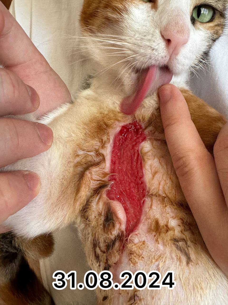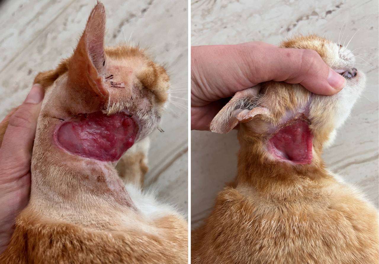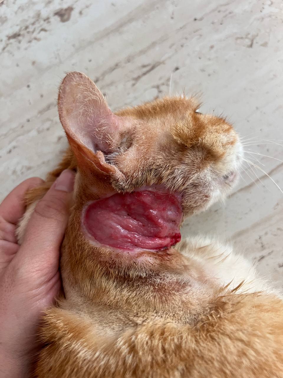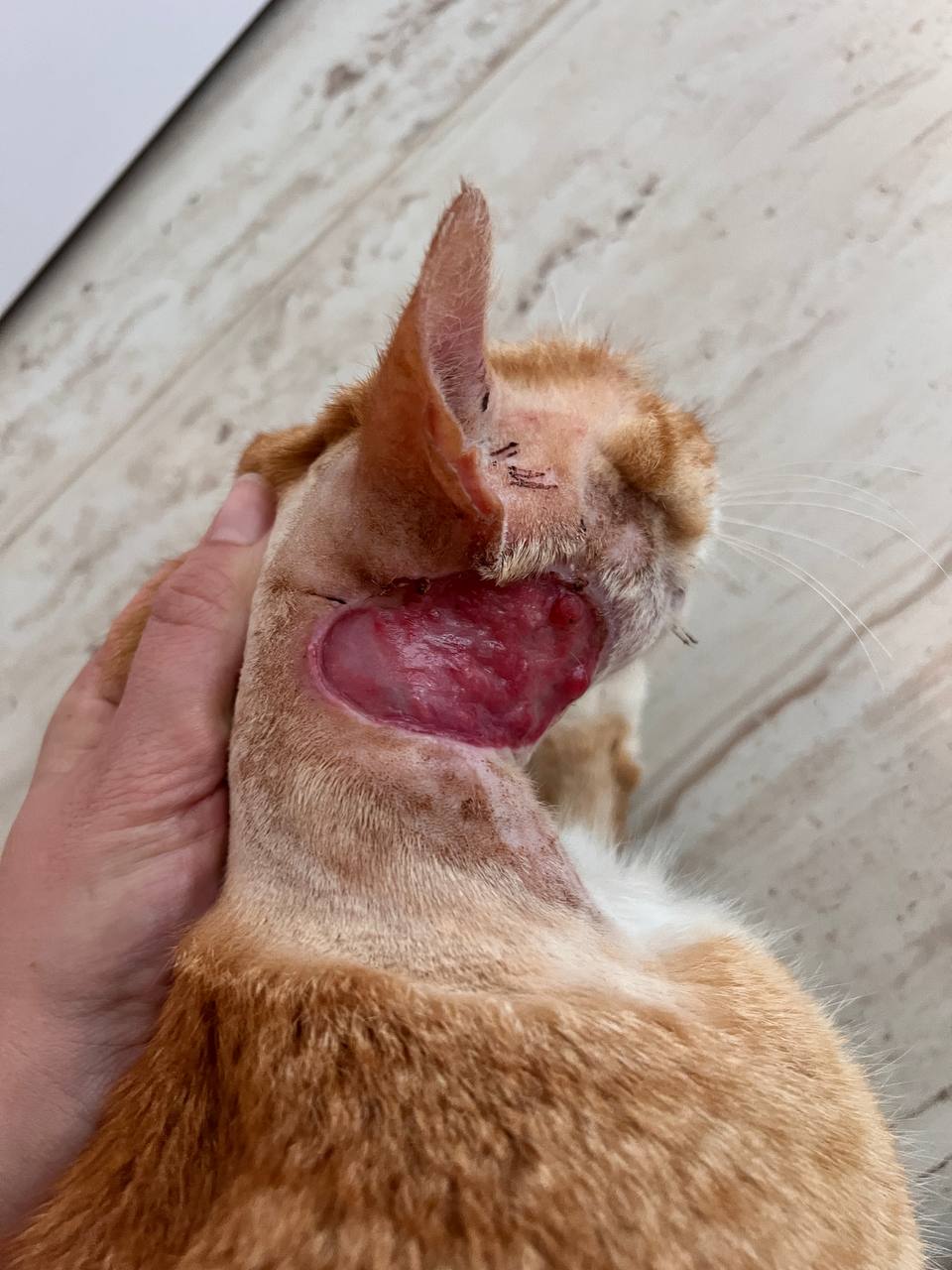 Вот такая у нас с @stilistka_ket была кошка на реабилитации после обширного некроза ткани предположительно от укуса змеи (мы точно не знаем, нам привезли кошку с такой историей).