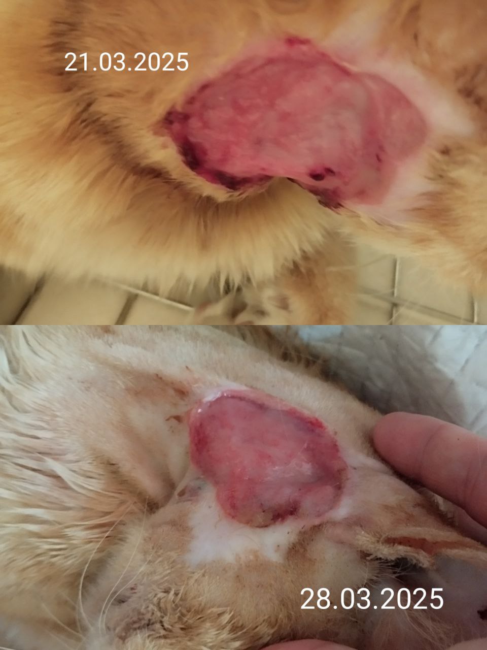 На фотоколлаже рана поступления вверху,внизу рана сегодня.