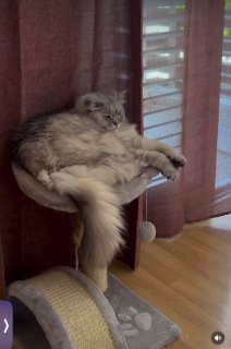 Пока за закрытыми дверьми женщина, раз в день выпускаю ее, Пипса на балкон предварительно) пару минут она его опшикивает издалека и я закрываю дверь. К ней захожу и исправно глажу, даю вкусни и вообще говорю какая она самая главная и любимая! Сегодня даже каталась, пузо показывала.