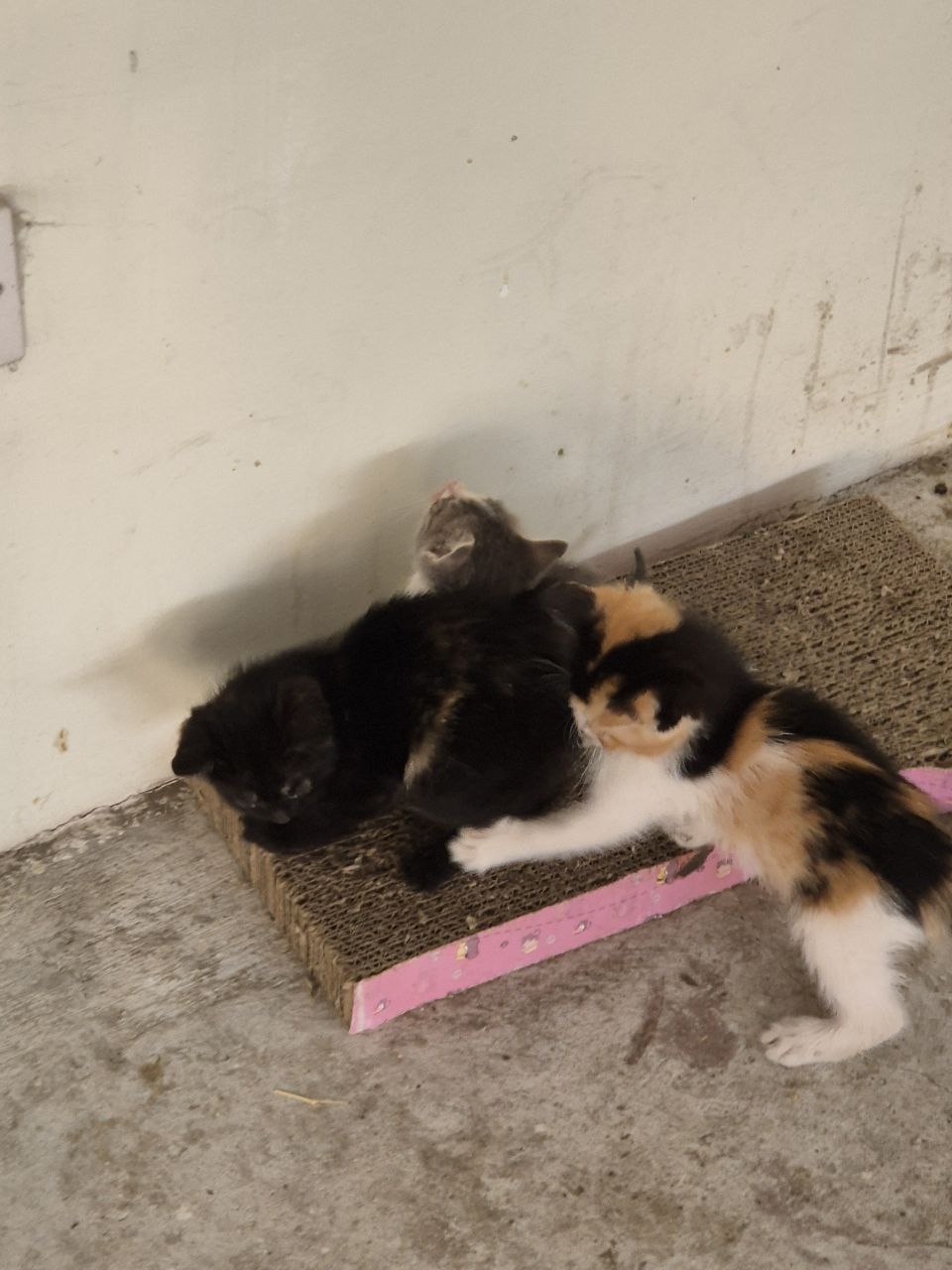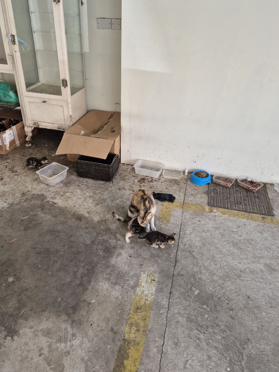 Сейчас место выглядит чуть по лучше — настоящий кошачий детский сад🙈, и без участия не справиться. На шкафу стоят капли, утром все малыши поели паштет, но это только временная мера.