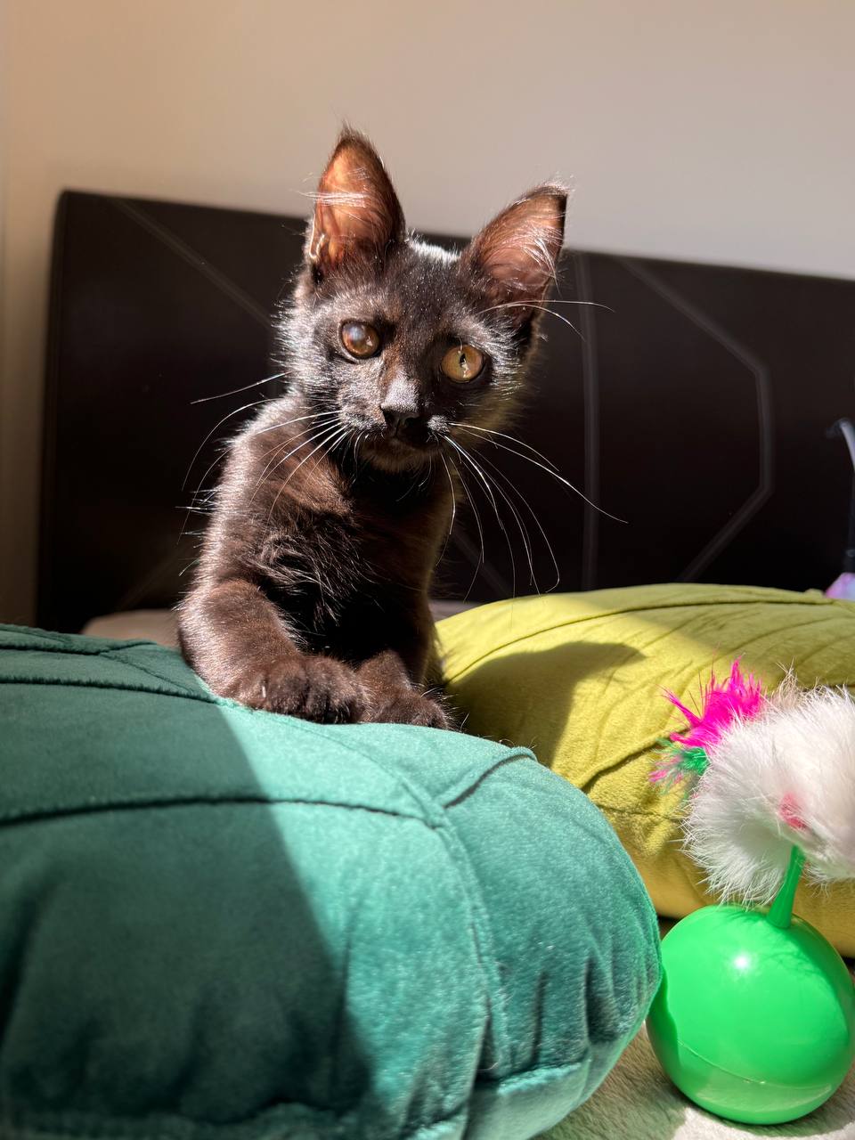 У Соул три лапки — одну она потеряла, скорее всего, из-за собаки. Но знаете что? Она не просто справляется — она ЖИВЁТ на полную катушку! 💥 Эта девчонка носится за игрушками, обожает обнимашки и легко покоряет сердца одним своим взглядом (один глазик у нее полностью здоров, вторым она видит только тени). @stilistka_ket говорит, что она умеет смотреть прямо в Душу, так крошка и обрела свое имя 💛
