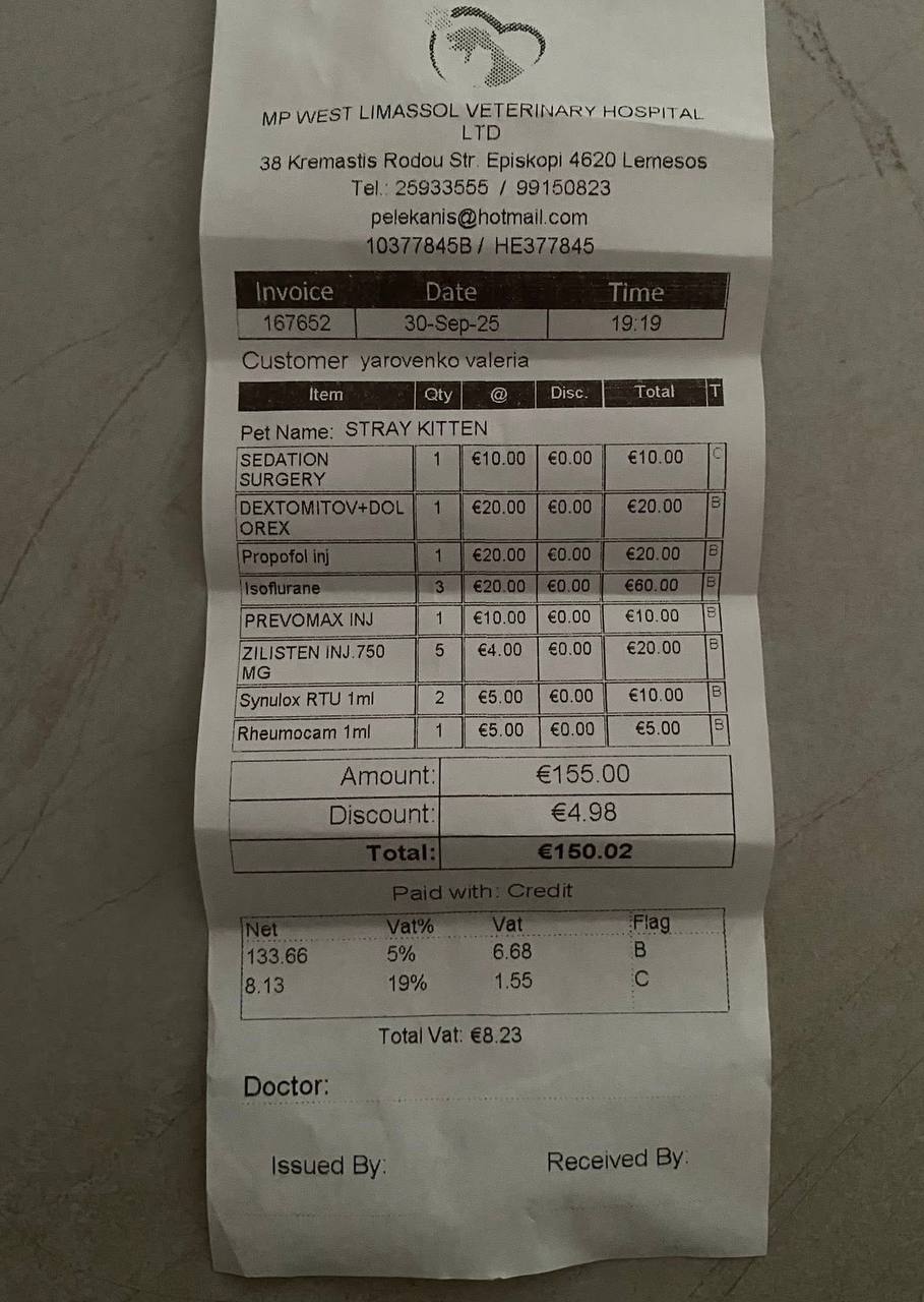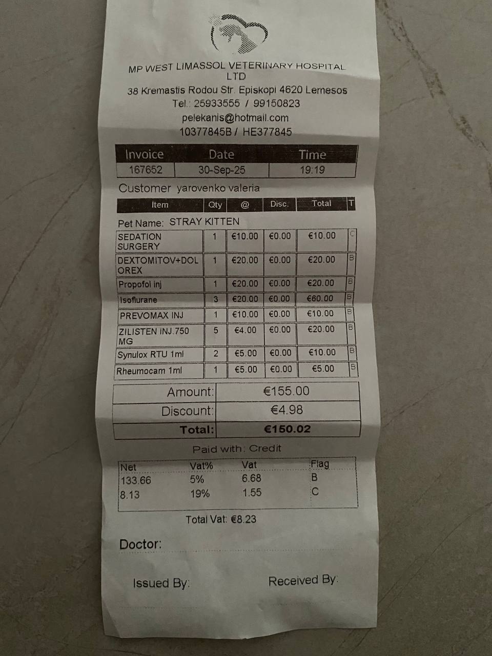 Если кто то еще хочет помочь в покрытии счетов, еще очень актуально, плюс 150 евро к предыдущей сумме.