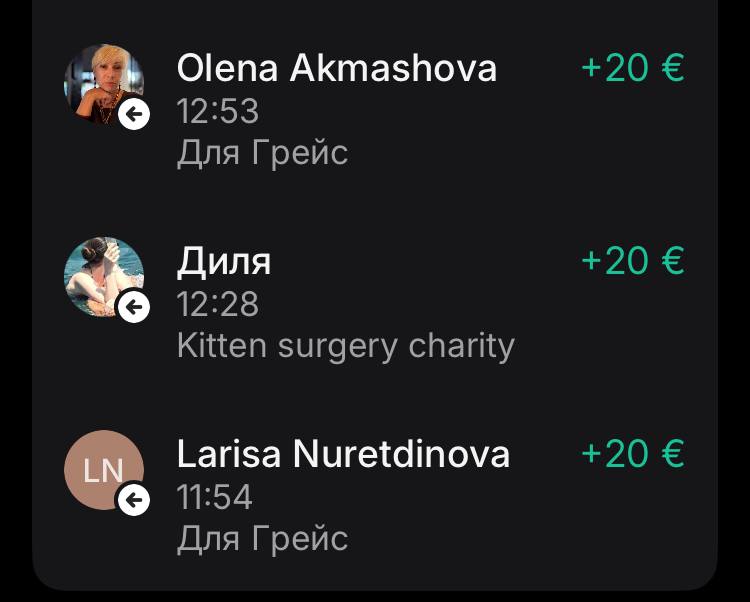 Друзья, сегодня расплатилась по долгам в клинике за Грейс, общий долг на сумму 495 Евро закрыт и сбор тоже!!! Благодаря вам!!! Я не устану благодарить всех кто помог, честно не ожидала что так много людей откликнется ❤️❤️❤️
