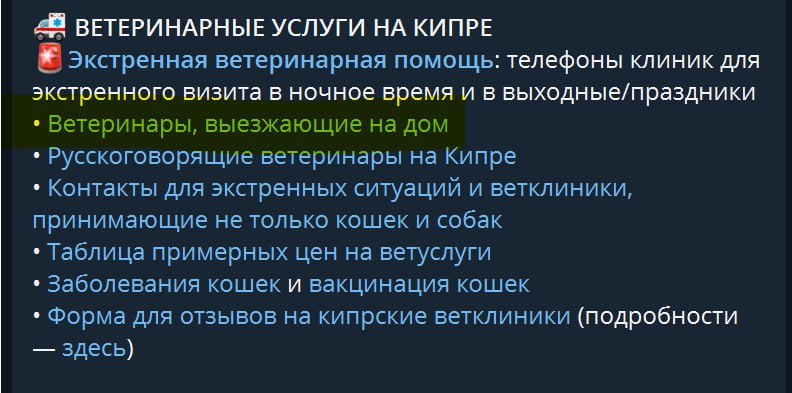 Всем привет! Подскажите плиз, есть ли на Кипре (в Лимассоле) вет врач, выезжающий на дом?