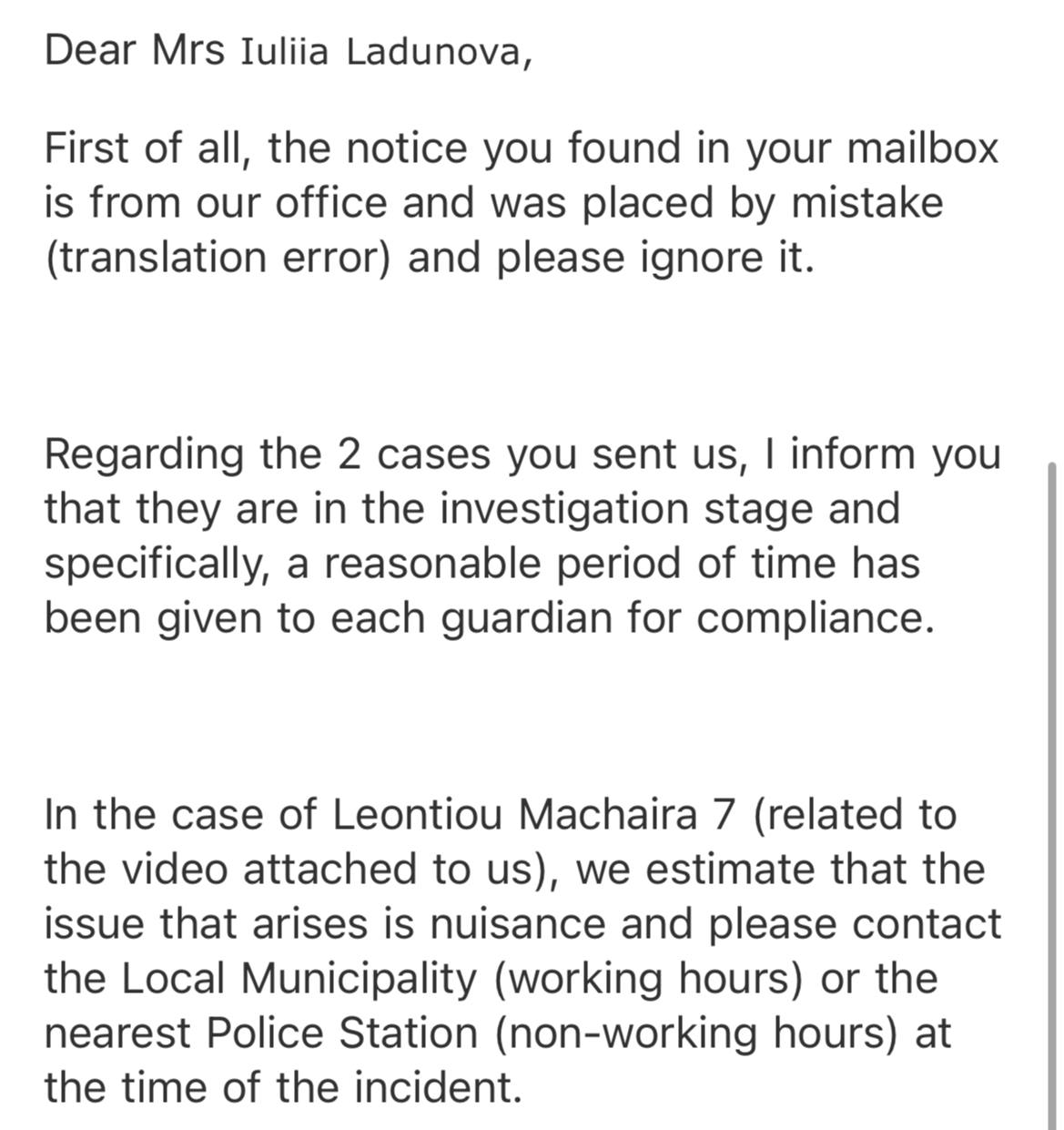 По этой истории - я вчера написала в ветеринарный департамент Ларнаки, мне ответил Pavlos Papadopoulos, пока задал уточняющие вопросы, я всё отправила.