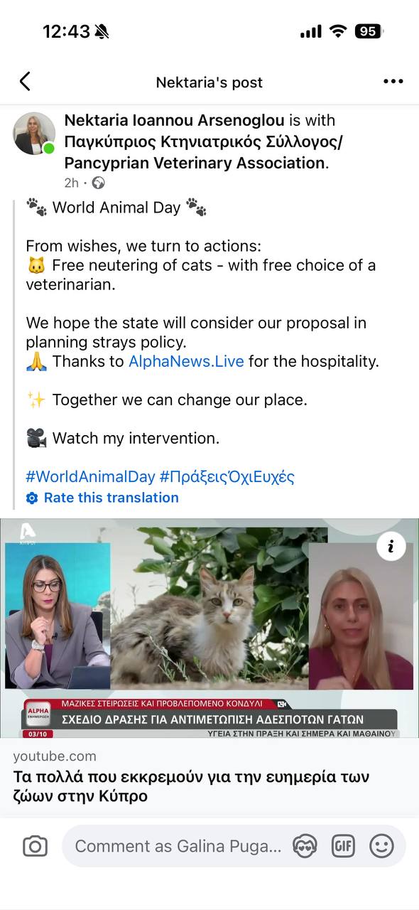 Я узнаю у Нектарии, это наш доктор и она в руководстве ассоциации — до этого она просила по возможности передавать данные про количество подопечных кошек, чтобы цифры подбить для правительства и защитить эту программу