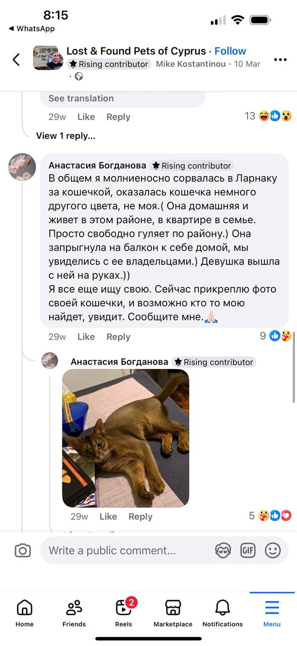 Игорь, Катюша, эта породистая кошка на самовыгуле…. В марте её уже «находили», вот пост. И другая, девушка, потерявшая свою такую же выяснила что эта кошка домашняя