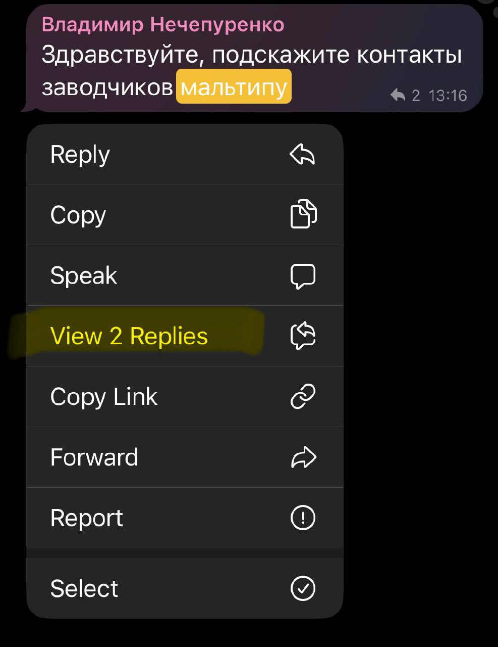 1. В поиске пишите «мальтипу» 2. Далее нажимаете на сообщение того кто спрашивал и выбираете показать ответы - видите сразу всех кто отвечал