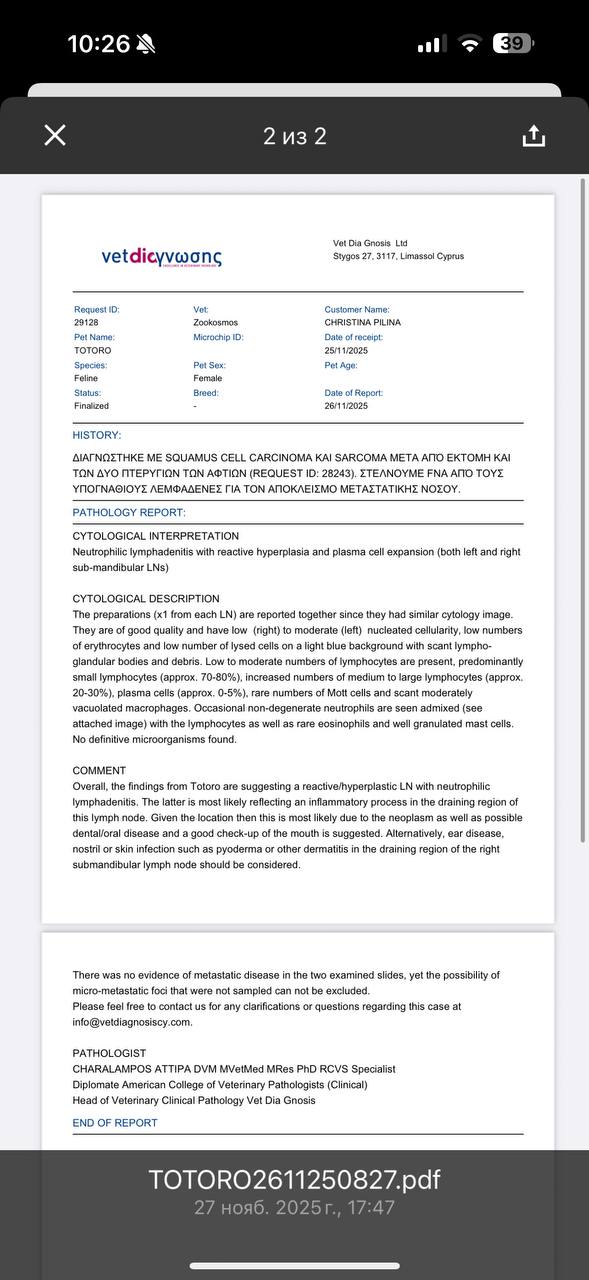 Еще поняла, что не прикладывала анализы Тоторо ранее, вот предыдущие и сегодняшний, вдруг кому-то будет интересно ознакомится 🤗