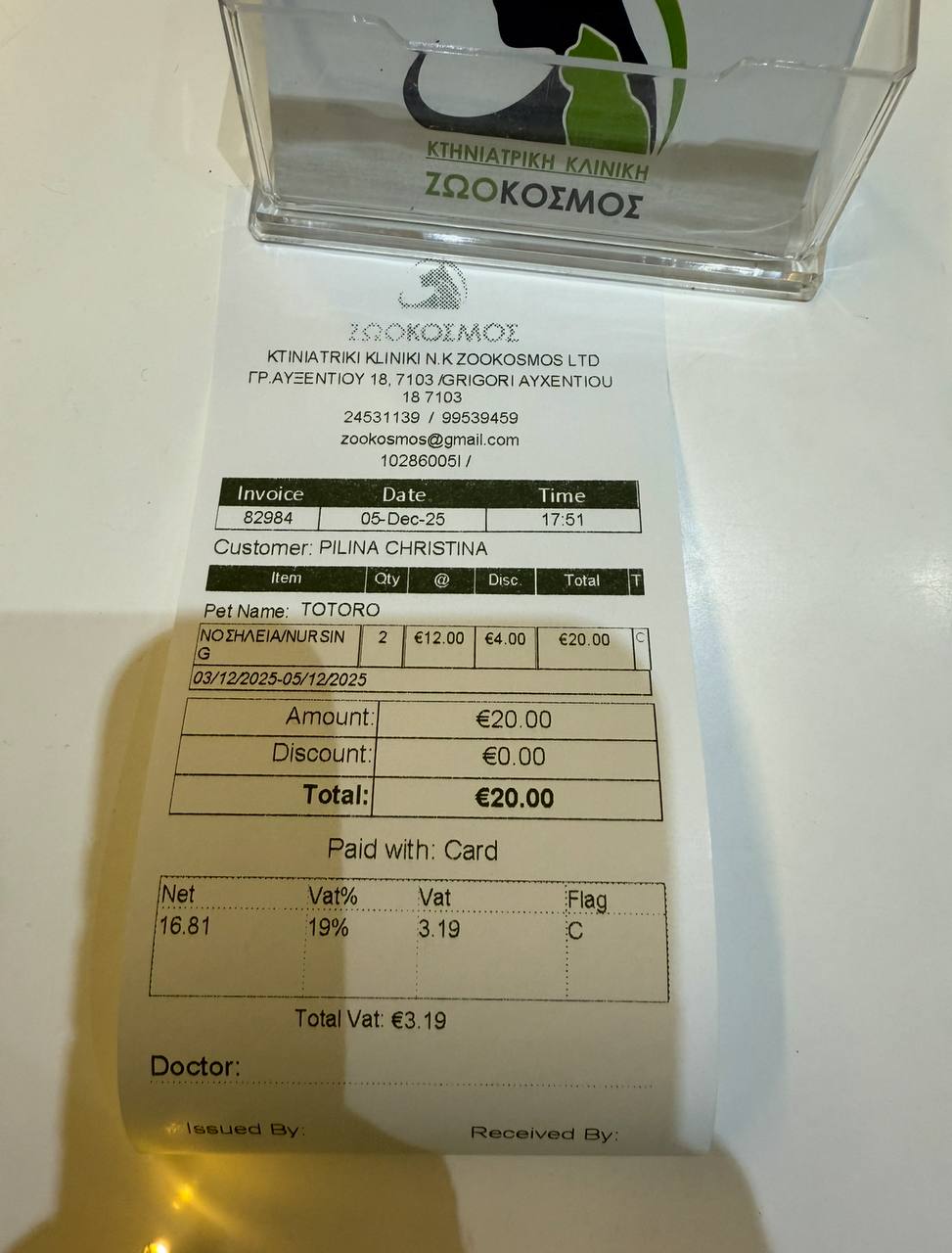Приятный шок ждал меня на кассе.. я конечно надеялась на скидку, но не настаивала - нам сразу обещали скидку на операцию (350 за оба ушка вместо 500), поэтому было бы наглостью просить больше..