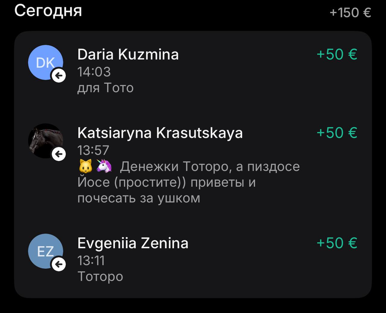 И нам еще приходили 10 евро☺️♥️♥️ искреннее спасибо за помощь!!!