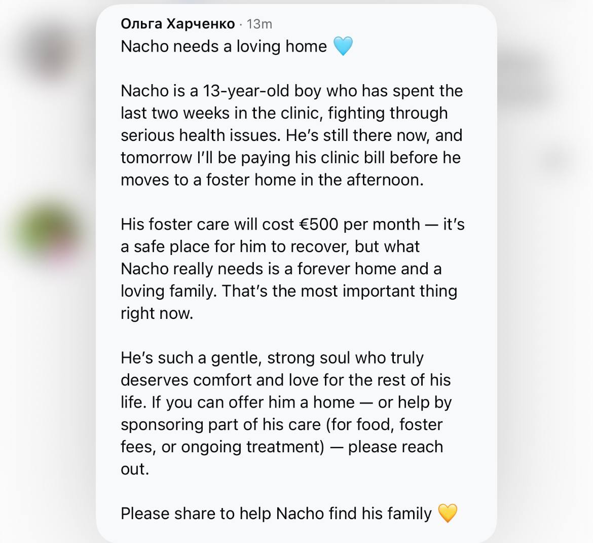 Если это случится, мы сможем общими усилиями помочь Начо найти дом. Судя по огромному количеству комментариев на посты о нём, там были люди, готовые помочь.