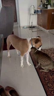 И вот - результат на видео выше. Но надо понимать, что этот котик - мальчик, а две другие - девочки, они собаку конечно же недолюбливают, мягко говоря, а она их - респектует👌