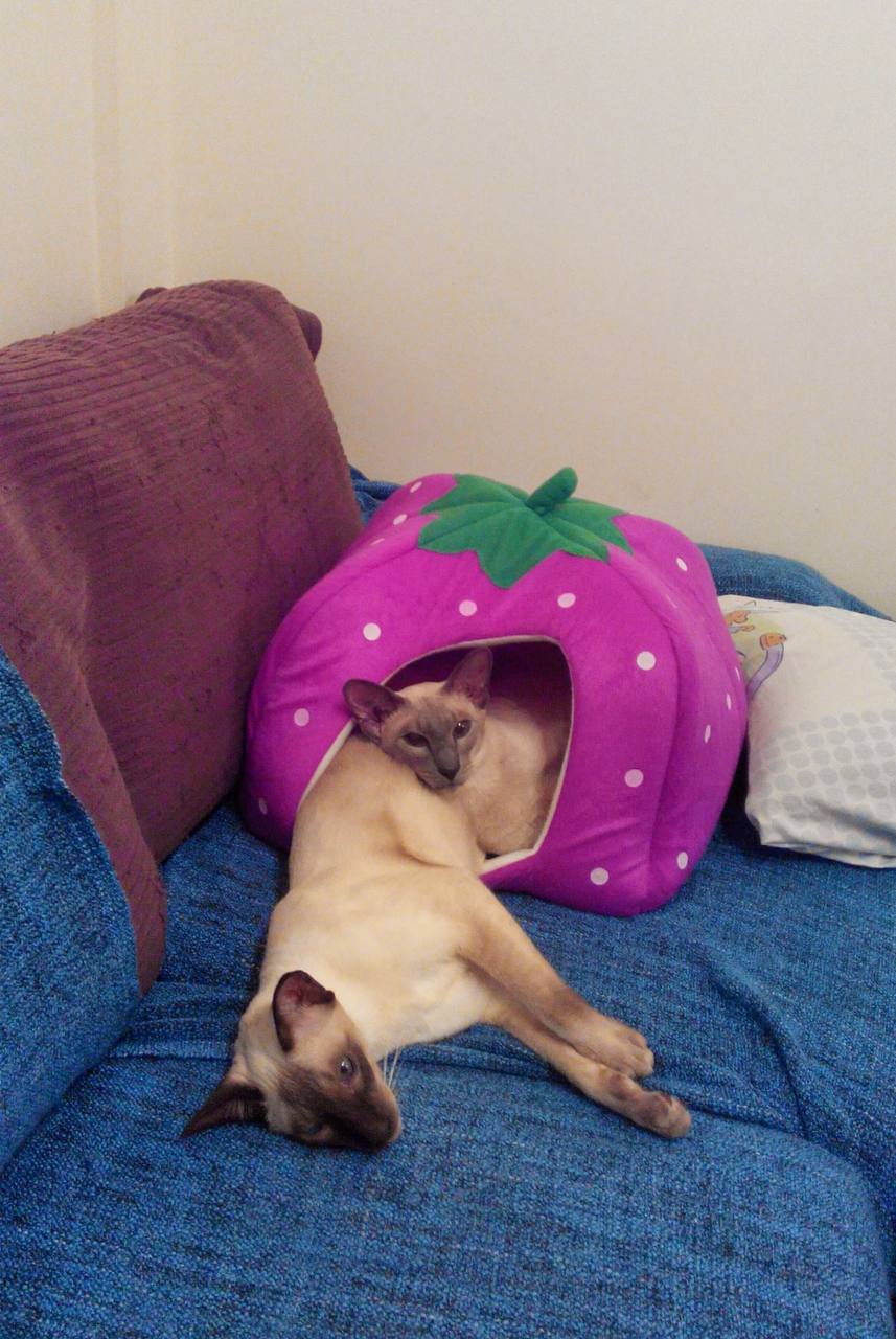 они прикольные, но есть большой недостаток - они легко сминаются и деформируются. А коты пытаются на них залезать и прыгать даже сверху. Должен быть жесткий каркас у домика. Я купила два года назад пластиковый в Мангасе за 40 евро, ничего с ним не случается. Подстилки только меняю периодически внутри