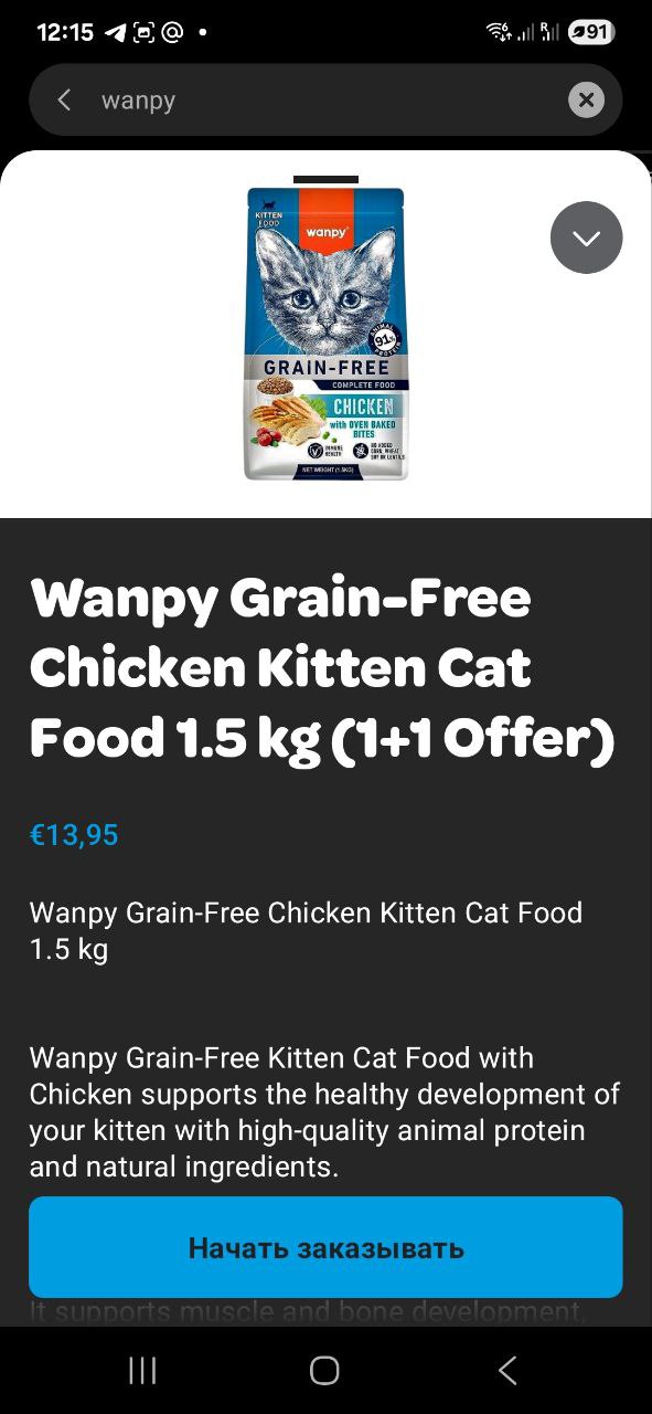Сухой Wanpy для котят тоже ест норм, но если рядом в миске Роял Канин - то сначала съедает его - я таким образом проверяю ее вкусы, что ей больше нравится)))