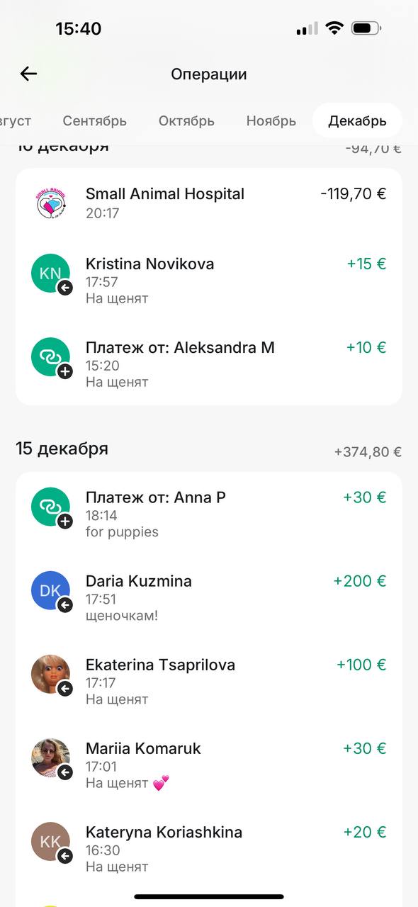 Благодаря вам нам удалось полностью закрыть счёт, указанный в чеках, и даже осталось плюс 67 евро. Эти средства я отложу в «копилочку» для щенков, потому что у нас всё ещё остаётся незакрытый счёт в клинике Animal Health: