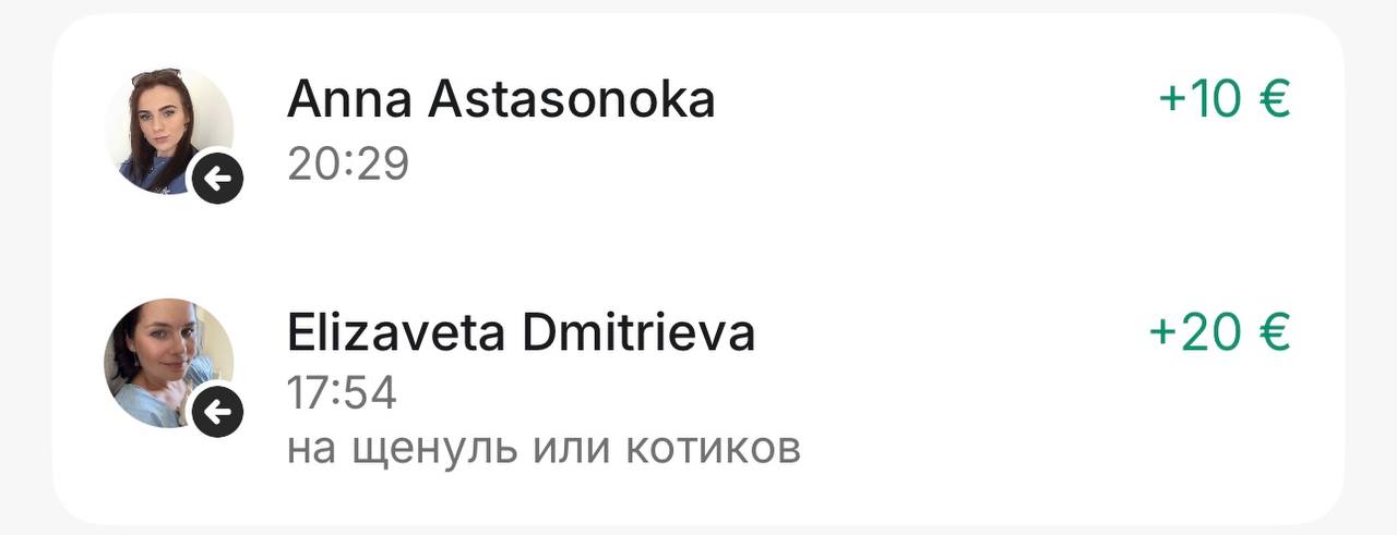 Нам пришла ещё одна огромная помощь — 530 евро: 430 евро на Revolut и 100 евро наличными от анонимного доброго человека.