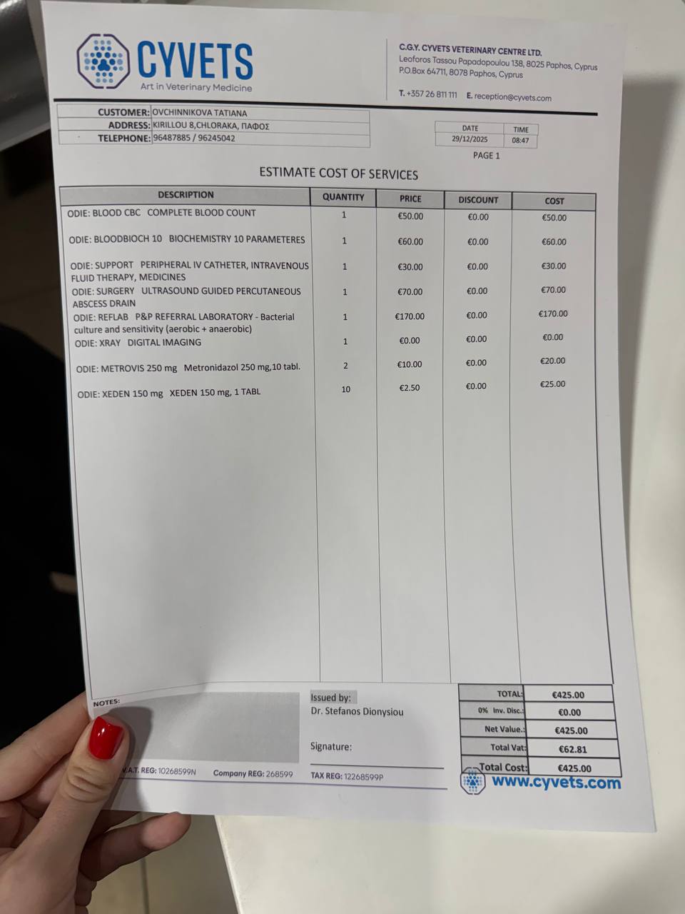 вывод: никогда не обращайтесь в paphiakos animal clinic в Пафосе