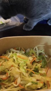 Она у меня кстати и на цитрусовые не реагирует 😅 я помню мы тут думали - как ее на стол лазить отучить. Так вот - начался сезон мандаринов - я беру 3 и начинаю их чистить на столе. Кошатина дремала на верхнем этаже своего домика неподалёку - вскочила - запрыгнула на стол, я не обращаю внимание - чищу мандарин, она щурится, но не уходит - сидит смотрит) кароч ей пофигу - единственный вариант, отвлечь ее во время еды - либо открыть балкон (но следить за ней параллельно), либо дать ей какой-то отвлекающий предмет - шуршащий фантик, кусочек курицы - она их будет гонять по полу)))