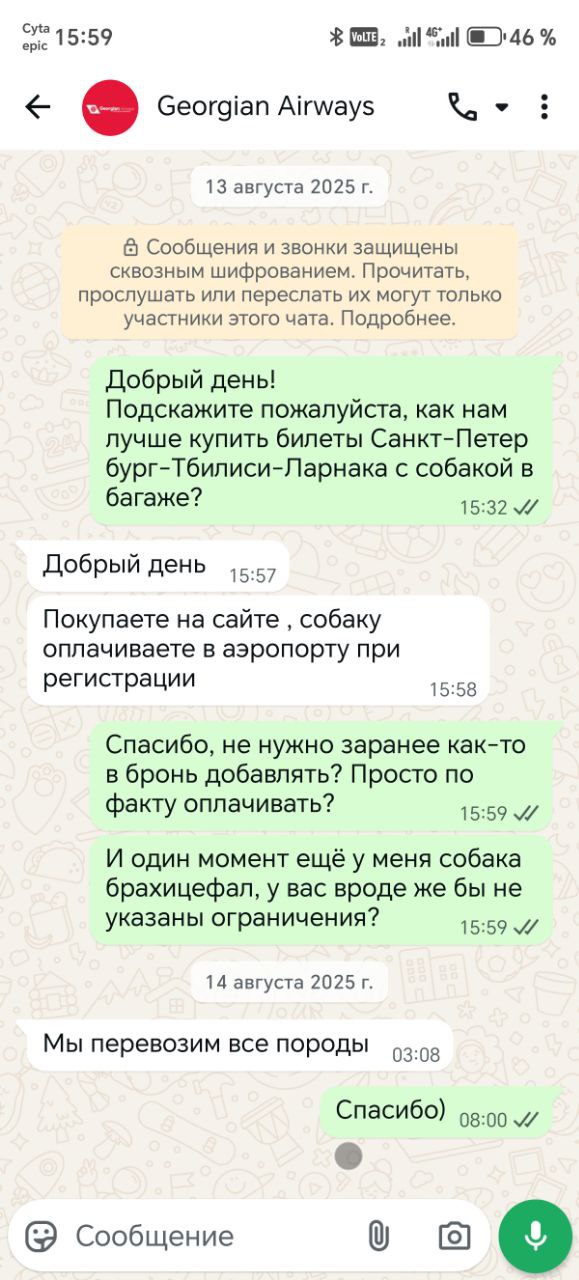 Грузины возят любые породы, я писала в московский офис. У меня частично брах летели из Москвы в Ларнаку в багаже