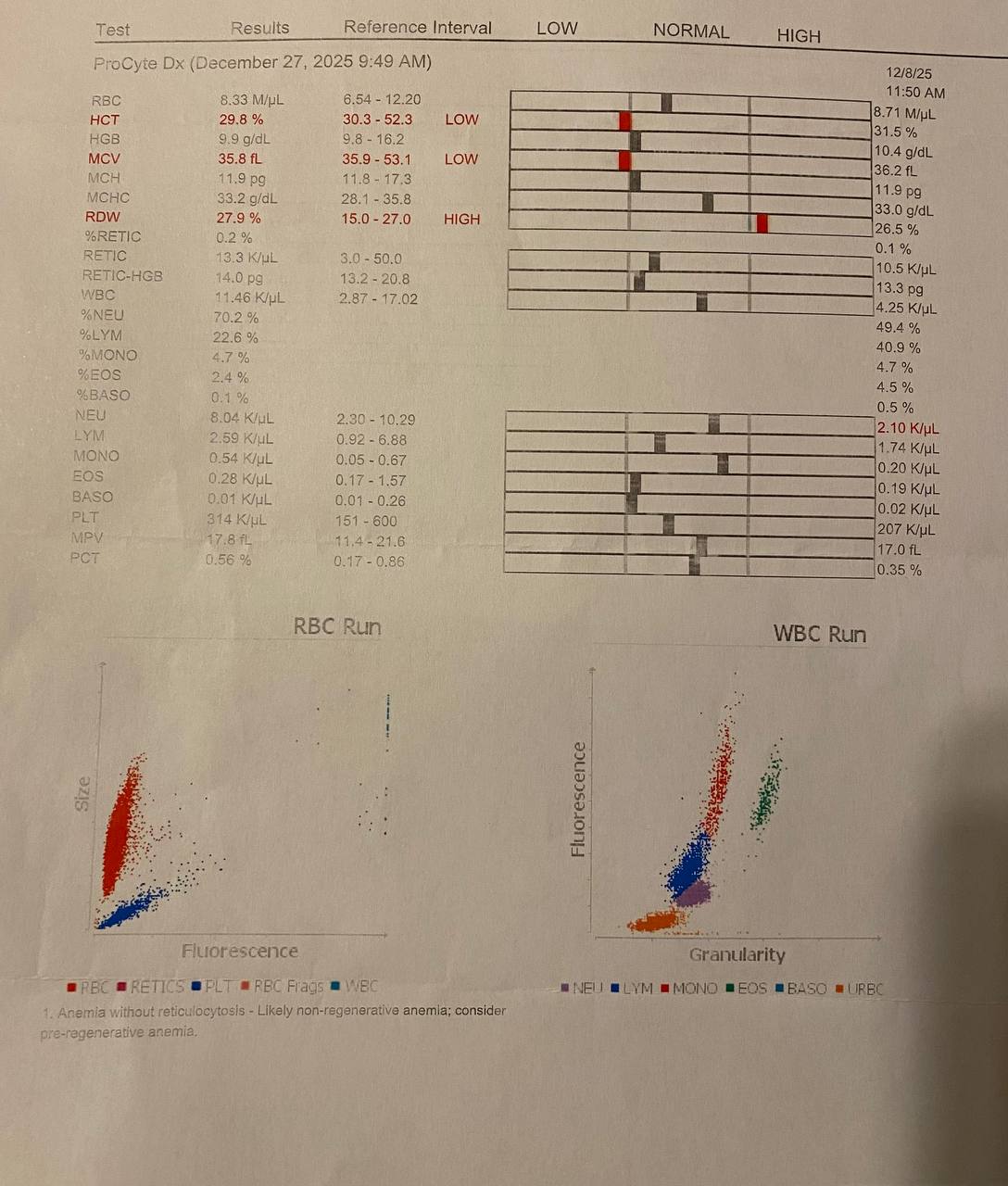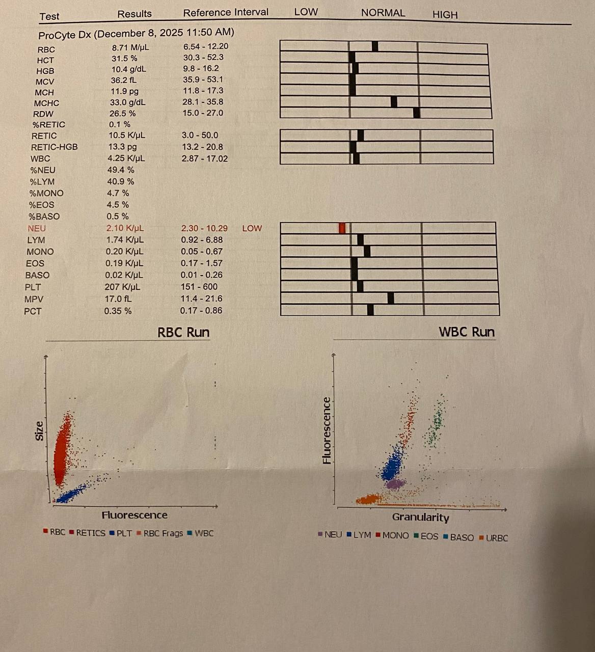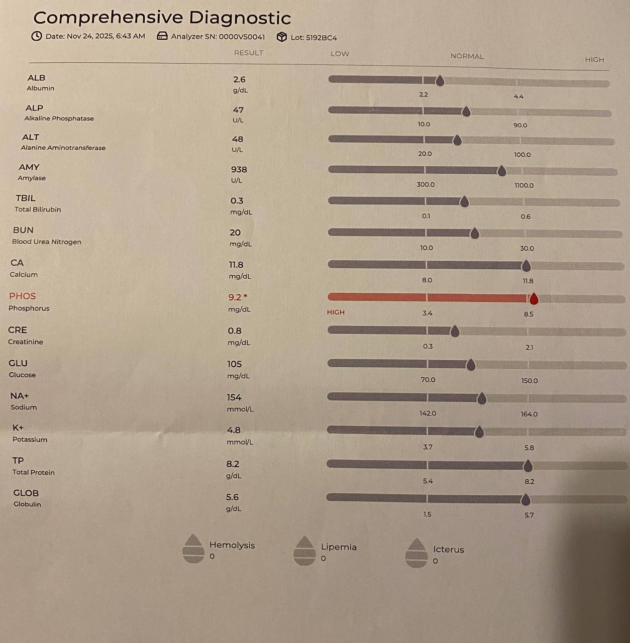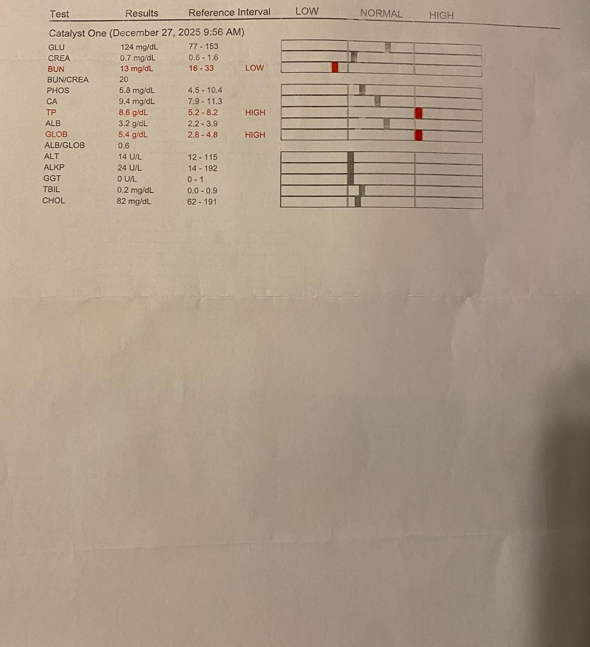 У Вас по соотношению A/G и анамнезу вероятность того, что это FIP стремится к 100%. Я бы тоже на Вашем месте начинала терапию от FIP, не дожидаясь результатов анализов: лучше с инъекций (GS/коронакэт/ипекон), после сняития острой стадии переходить на Молнупиравир.