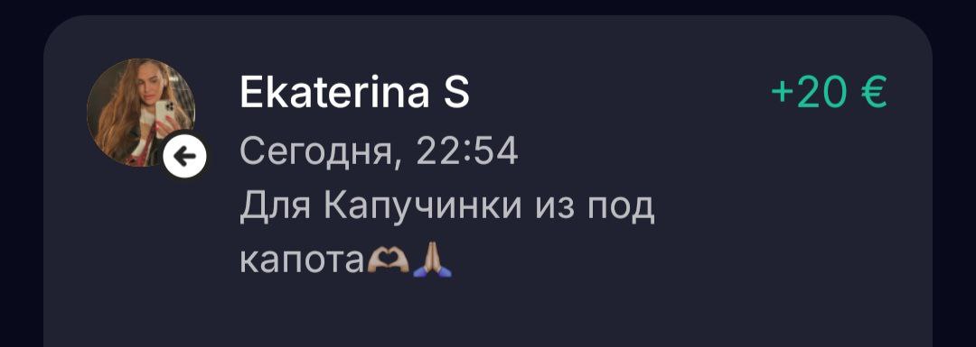 Мне пришли 100 от @geklmn и 50 от ребят, в чью машину она залезла.
